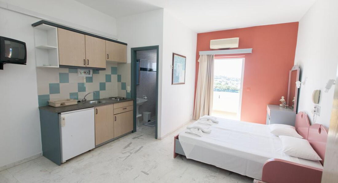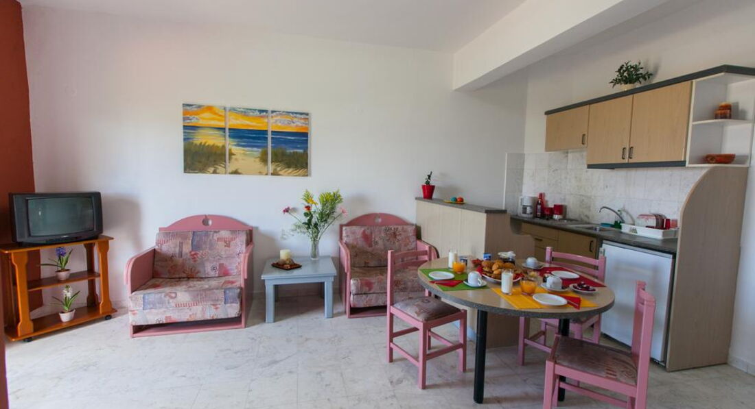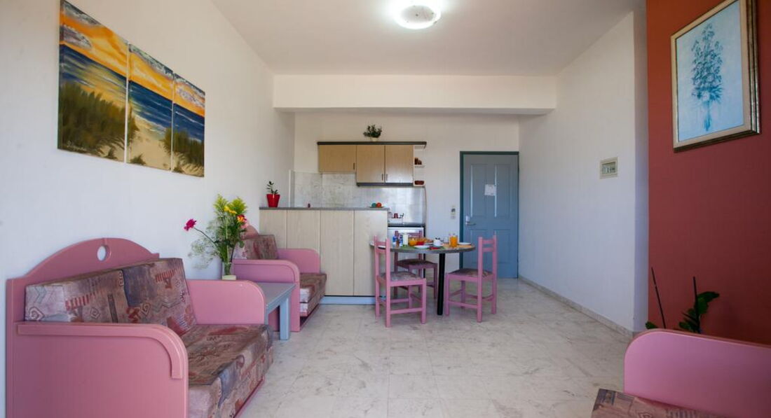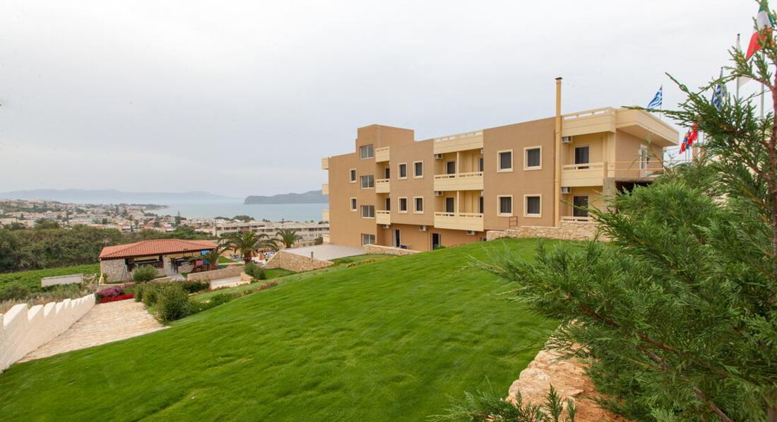 Розташування: на пагорбі, в селі Псатхі Сталос, за 200 метрів від пляжу Сталоса, за 7 км від міста Ханья і за 10 км від порту.