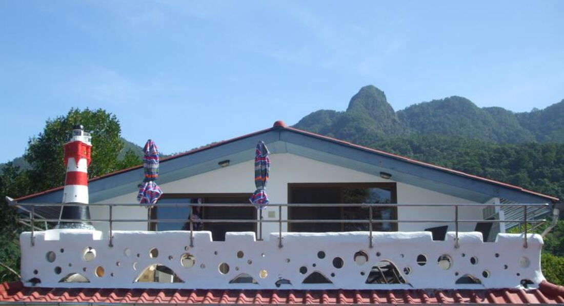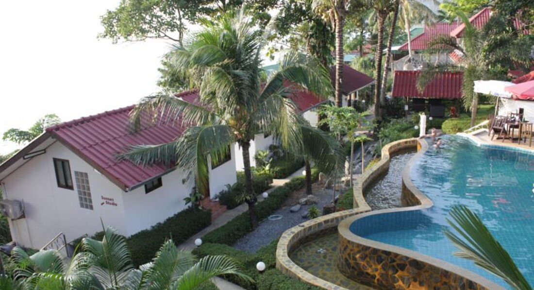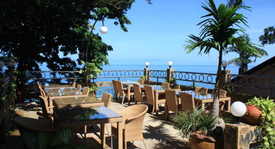 Ничем неприметный рецепшен с улицы открывает путь в сказку. Отель расположен на возвышенности, с одной сторны вид на бескрайнее море, чего стоит увидеть закат. С другой стороны вид на зеленые горы. Вся территория - это зеленый сад с бассйеном. Отдыхали в разних типах номеров: супериор, бунгало с видом на море и в вилле. В каждой комнате бунгало и виллы установлен кондиционер и телевизор, оборудован кухонный уголок (холодильник, тостер, чайник, кофемашина, посуда и даже плита в бунгало). Вид с терассы вилы завораживает. В отеле сооружен каменный спуск к морю, где волны разбиваются о скалы.