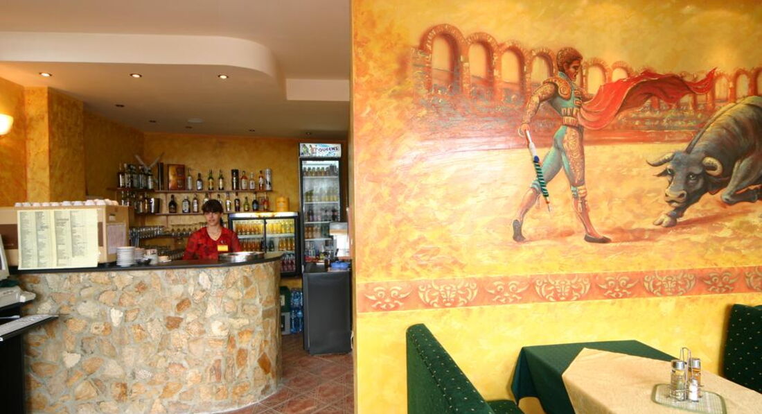 Отель дает скидку 7% в ресторан и пиццерию CAZA OLE, который находится по пути к морю в 3-4 минутах ходьбы. Еда вкуснейшая, порции большие, персонал в ресторане и пиццерии разный (нам в пиццерии больше понравился). Обед на троих с пивом выходит около 30-40 левов.