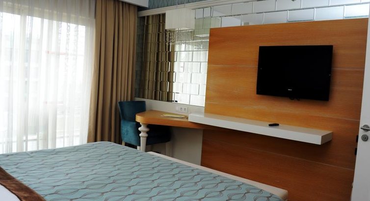 В целом отель понравился. Разместили быстро. Номер достался с раковиной с видом на дорогу! В номере все отлично, кровати удобные, пастельное белоснежное. В номере нас ждала пляжная сумка и полотенце для пляжа. Большой букет цветов, фрукты в номер и бутылка вина. Мини мар пополнялся ежедневно. Питание хорошее, голодным не останешься, но к повару за горячим блюдом всегда очередь. Территории у отеля почти нет, 2 бассейна. Пляж через общую променадную дорожку. Пляж сам хороший, пологий заход в море, мелководье. Большие волны. Лежаков много, хватает, но не комфортно, как в Анапе, яблоку негде упасть. Хороший бар на пляже, алкоголь, гезлеме, и в обед - горячее, пицца. В целом цена-качество. В отеле в основном пенсионеры европейцы и с детьми.