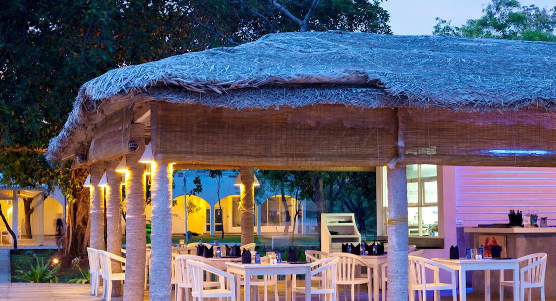 Питание выше всяких похвал. Свежие соки, фрукты, мясо, овощи. Выпечка очень вкусная. Повара молодцы. От стола отползали как объевшиеся паучки, хотелось все попробовать. Территория небольшая, ухоженная. Мы были в восторге от белочек, которых кормили семечками, цапли ходят около лежаков, и даже дикие обезьяны! Рыбаки на пляже - это как ежедневное шоу. Хотелось бы чтоб по территории не гуляли коровы. Лежать и нюхать результат прогулки коров не очень приятно. Отель хороший. Но только для замкнутого отдыха. За территорией нет ничего.