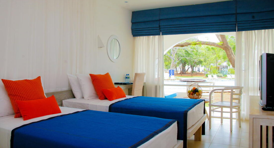 Приехали с супругой в Тринко на 2 дня, решили провести их в "Chaya blue" (на тот момент так назывался этот отель), но после знакомства с отличной компанией, остались на неделю))) Чистые номера, особенно важно постель, потому что объехав весь остров, поняли, для ланкийцев это не главное)))), чистая территория, очень много дикой живности игуаны, хамелеоны, попугаи, белки и пр., небольшое неудобство доставляют вороны, т.к. на балконе нельзя ничего оставлять или оставлять только то - отчего хотите избавиться. Отличное расположение, за территорией отеля много небольших кафе, нам больше всего понравилось в "Gaga", хорошая кухня и обслуживание, посидеть на пляже за стаканчиком чего-нибудь и послушать отличную музыку, лучше всего в Fernandos bar.