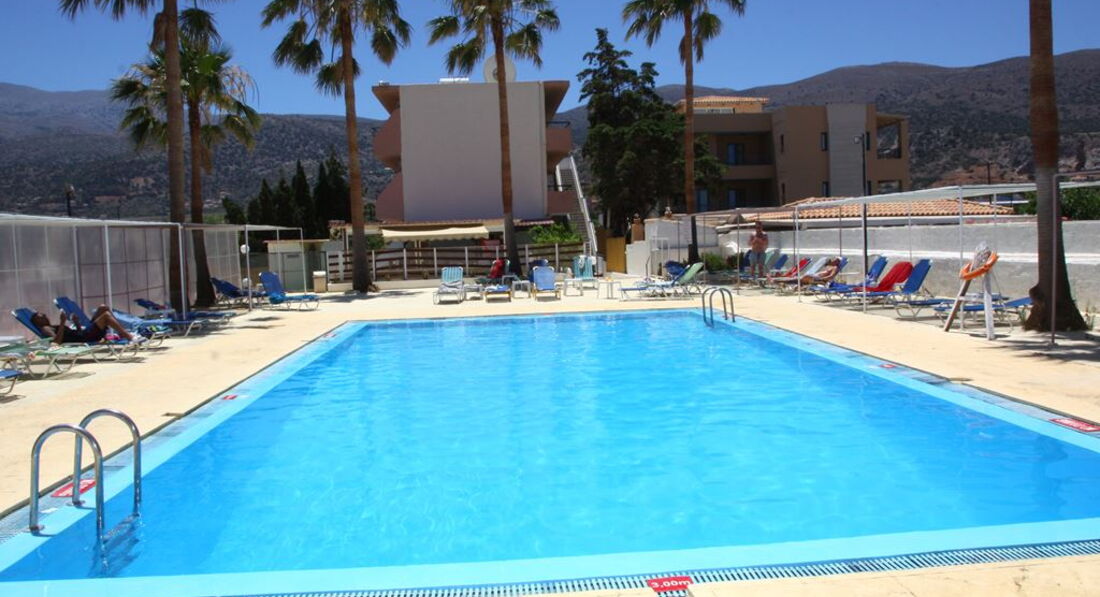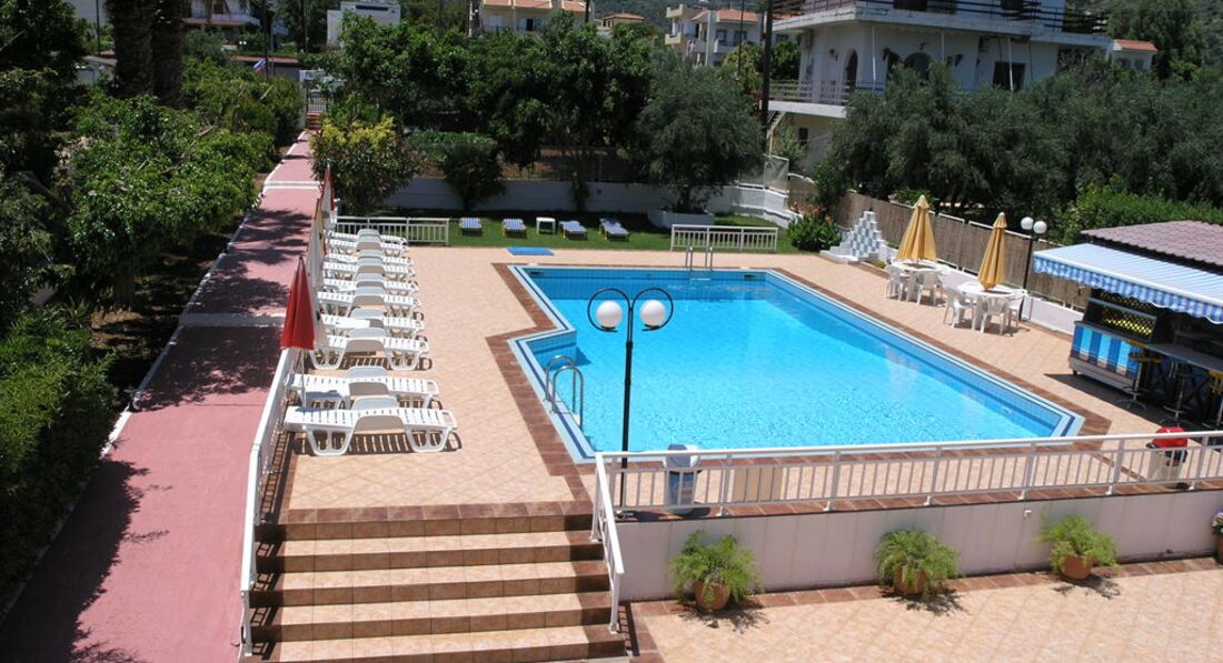 Невеликий затишний готель розташований неподалік піщаного пляжу. Затишна територія, просторі номери, басейн, бар, Інтернет. Ідеально підходить для сімейного економічного відпочинку. У легкій доступності м. Херсоніссос з його численними магазинами, тавернами, барами та нічними клубами, де ви можете знайти розваги на свій смак.