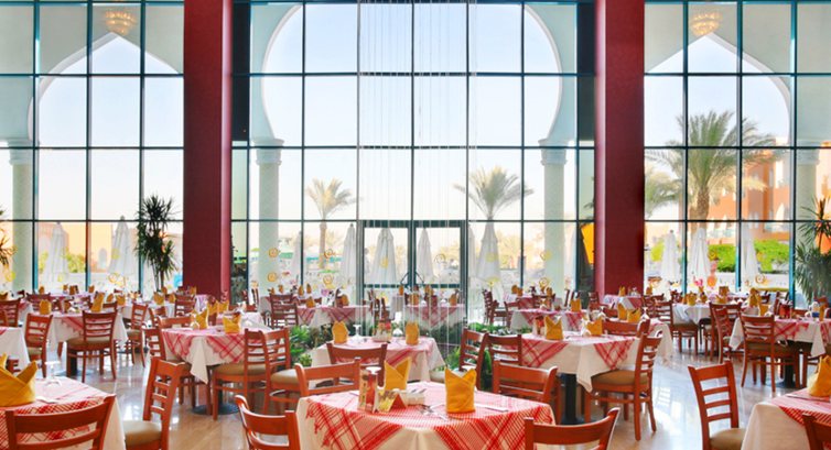 Бари та ресторани: головний ресторан розрахований на 800 осіб (критий, з кондиціонером, дієтичне меню, дитячі стільці); лобі-бар (24 години), 3 бари біля басейну (10:00-17:00), бар на пляжі (10:00-17:00). 4 ресторани A la Carte: китайський, італійський, рибний, середземноморський - безкоштовно, за попередньою резервацією.