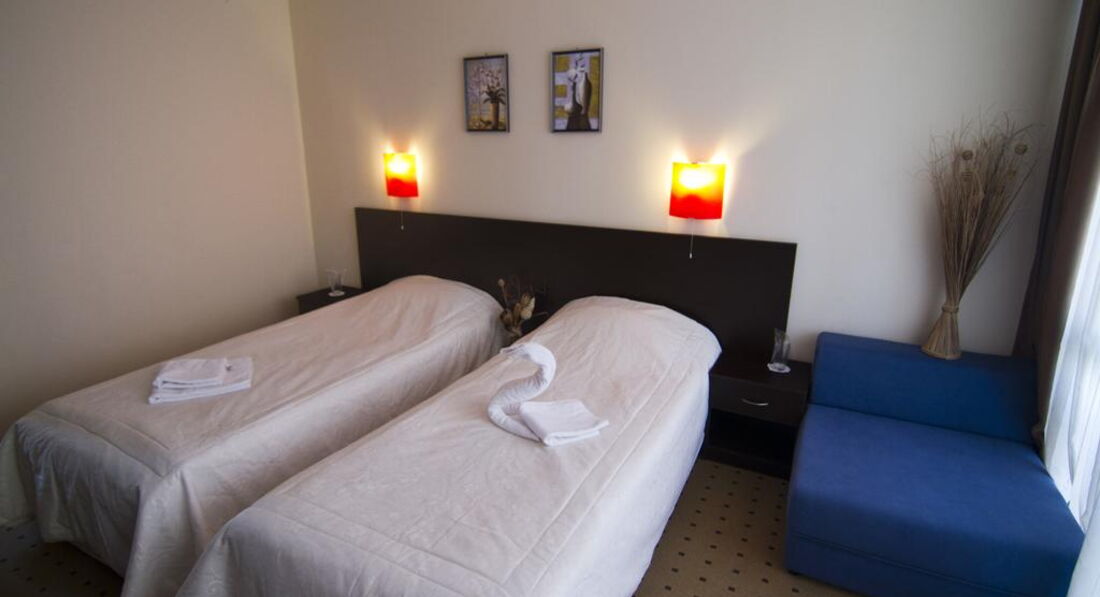 Standard – одне двоспальне ліжко або два односпальні ліжка, розкладне крісло, макс. 2 дор. + 1 дит. або 3 дор., 25 м2.