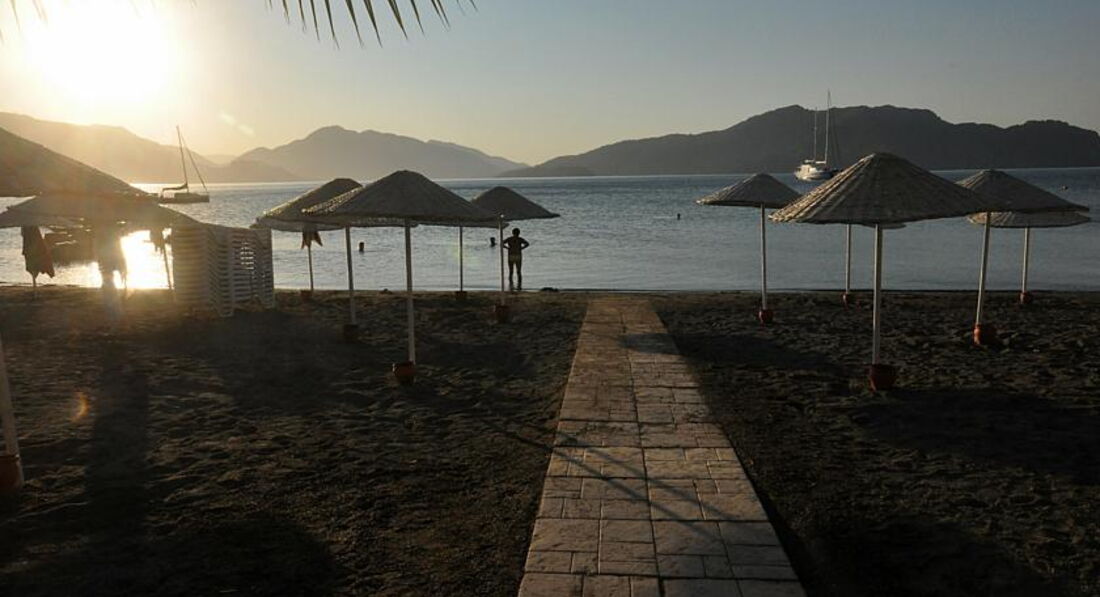 Пляж достаточно просторный, песчанно галечный, мест всегда всем хватало, лежаки и матрасы предоставлялись бесплатно. По сравнении со всеми остальными пляжами в Мармарисе этот один из лучших, в остальных гостиницах ближе к центру, пляжи очень маленькие и все лежаки близко к друг другу.