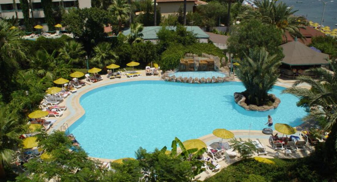 Территория у гостиницы небольшая, в принципе как и у всех гостиниц в Мармарисе, потому что выходишь из гостиницы и сразу пооменад из которого можно дойти до центра. Вообще Мармарис тусовочный город, есть много клубов и отдыхают европейцы.