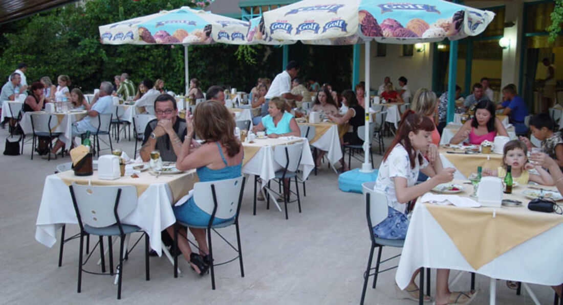 Ресторан. первые пару дней показалось, что официантам наплевать на всех - заняты своим делом и не реагируют на людей или делают вид, что не понимают. Потом появился Тевфик, для начала высказал нам свое недовольство тем , что мы все напитки сами себе принесли. Сказал, что они здесь работаю для того, что бы мы хорошо отдыхали. И у нас начались нормальные дни, наш официант всегда интересовался, что будем пить и нам приносилось соответствующая посуда и напитки (когда надо было бокалы со льдом) Ассортимент не пятерки, но покушать всегда было что, и что самое главное всегда все свежее. Готовят еду не большими порциями и по-мере ухода приносят с кухни и добавляют. Из фруктов стандартно арбуз, дыня , яблоки - всегда, но и другие фрукты перепадали. С десертами напряг ( в отличии от других мест нашего отдыха), но без сладкого не оставались: манка запеченная в разных видах, сливки растительные взбитые и выложенные тортиком, тортики , пудинги и суфле, на ужин всегда было мороженое трех вкусов. Пахлаву турецкую выпросил у шеф-повара через официанта - один раз за неделю сделали (впечатление не произвела, пару раз покупали на улице -готовят лучше) Кофе, чай, напитки из аппаратов, пиво, вино, колу и т.д. официанты приносят из бара. На завтрак булочки, шарики и яйца всех видов, каши не было не разу (даже какой нибудь простенькой) Ужин на все сто: рыбку жареную давали целиком, курица постоянно, говядина и баранина, на гарнир картошка или макаронные изделия, салатики.