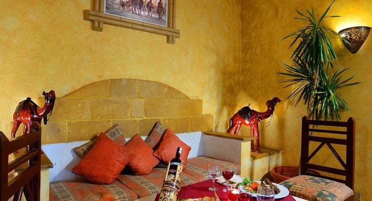 Отель выполнен в арабском стиле.Номера старые,телевизоры старые.Интернет в холле,платный.Сейф на рецепшен,бесплатный.Вокруг горы. Выйти не куда.В Дахаб 5 раз в день ходит бесплатный автобус.