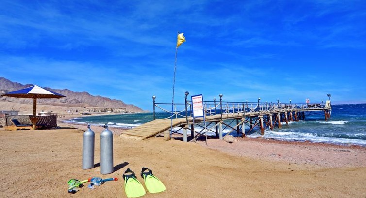До знаменитой "Голубой дыры" около 5 минут на трансфере, также много других сайтов поблизости. Любителям глубины понравится на Каньоне: 54 метра кристально-голубой воды всего в двух минутах езды от отеля. На домашнем рифе большое разнообразие фауны: встречали черепаху, скатов, мурену. Можно арендовать маску и ласты для сноркелинга и насладиться рифами без погружения.