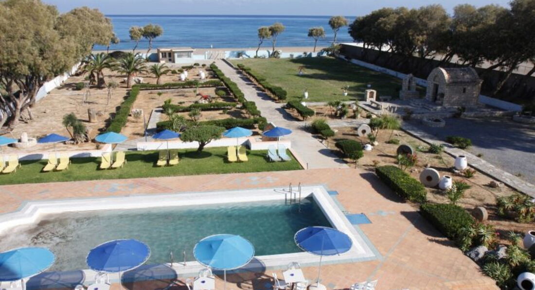 Розташування: розташований за 9 км на захід від аеропорту м. Іракліон, за 3 км від центру міста Іракліон, в курортному містечку Аммудара, на березі моря.