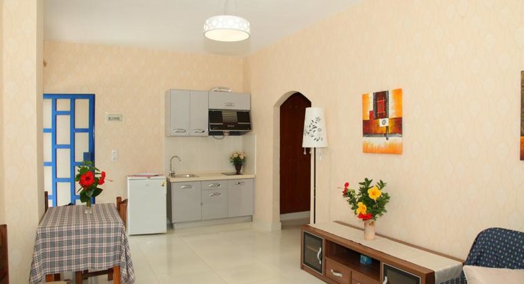 На піщаному пляжі Аналіпсі , відстань до центру міста 100 м, до аеропорту 17 км.