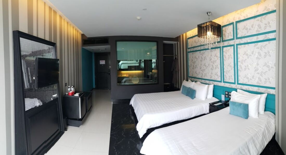Отдыхали вдвоем с женой, разместили быстро, в номер проводили, по привычке даю чаевые доллар, таец головой кивает нет и говорит по русски "сто рублей " насмешил в общем. На момент проживания рядом была стройка, постоянный шум. Завтраки хорошие, бассейн маленький и находится прям на дороге почти, большой плюс что тут же рядом отели четверки и пятерка и они в общей структуре и туда спокойно можно ходить и в бассейны и на пляж, правда персонал тех отелей чужакам не рад, но нам было всё равно, администрация дала добро значит пользуемся. Звукоизоляции в отеле никакой, слышимость отличная, на нашем этаже жили китайцы и круглые сутки орали на весь отель