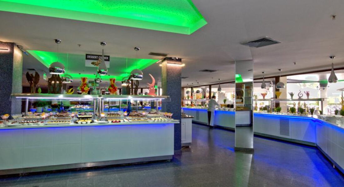 Теперь о питании. В Турции я третий раз, был и в Египте, но такого разнообразия я что-то не припомню ни где. Каждый день и мясо в разных вариациях и курица и рыба, на любой вкус. Много овощей и зелени, много фруктов и как всегда на востоке огромный выбор десертов с неповторимой турецкой пахлавой. Небольшим недостатком считаю отсутствие разнообразия супов...брал пару раз, суп-пюре грибной, показался чересчур соленым и мясной бульон с лапшой вообще показалось, сделан из бульонных кубиков. Но из за этого я бы оценку не занижал...выбор блюд очень большой, как ни старался себя сдерживать, все равно потом было стыдно за то, что набрал больше чем в состоянии съесть :о)Голодным здесь остаться невозможно, ресторан закрывается утром в 10:00, а в 12:30 открывается снейк-бар это ближе к пляжу, мы шли туда всегда кушать арбуз, всегда чудесно-сладкий, а для желающих что-то посущественнее или просто мороженное.