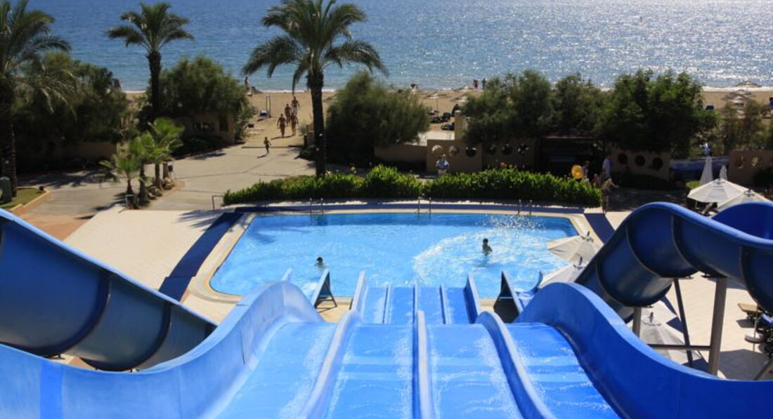 Первые три дня нам не очень повезло (23-25 сентября) с погодой, видно циклон который накрыл Россию, немного зацепил и Турцию, вечерами было несколько прохладно и днем жена даже в море не залезла, я тот купался во всю :о) Но затем погода вошла в свою климатическую норму и на пляже днем невозможно стало стоять на раскаленном песке. Пляж тут песчаный и чистый, видели как ночью его чистит техника. Море чистое, вход пологий, комфортно для детей и тех кто плохо плавает. Брали маску и трубку, но после красного моря тут увы вообще не на что смотреть. Поэтому я и выбирал отель с аквапарком...Поплавал в море и бегом на горки и в бассейн ополоснутся. Аквапарк работает почти целый день (перерыв с 12:00 до 13:00) Катался каждый день...не надоело :о) Ребятам спасателям привет и респект целый день запускают эти круги, при том улыбаются, всегда приветливы ( Неllo Big Man :о)) при том у них не забалуешь :о) пьяных не пускают, если хулиганят на горке тоже забирают круг, все stop, а большим дядям только большой круг :о).
