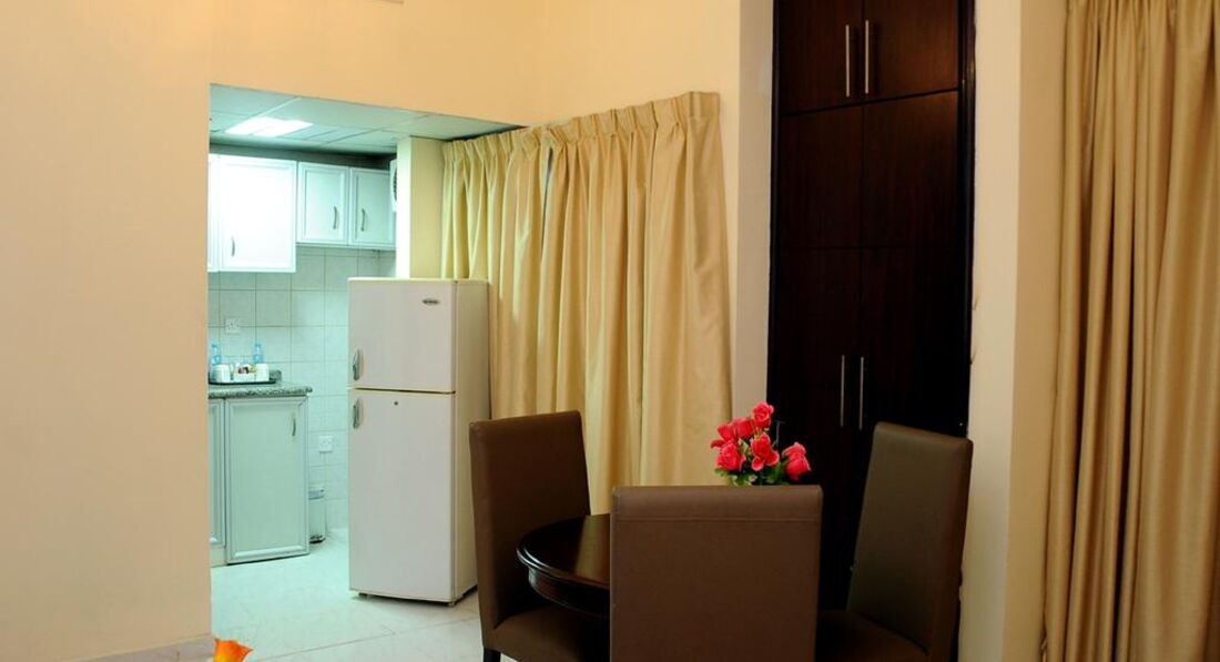 Елегантний апарт-готель розташований у самому центрі міста Аджман, поряд з торговими та торговими та комерційними центрами. Апартаменти оснащені зручністю та комфортом, обладнані кухнею для приготування їжі. Гості можуть легко дістатися до будь-якої точки міста.