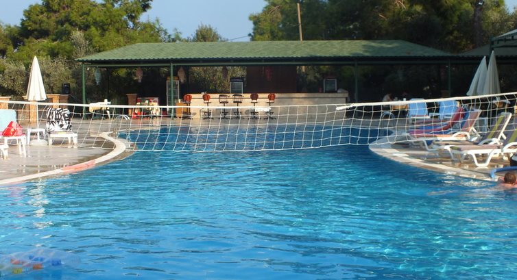 Бассейна в отеле 2 большой и детский, оба хорошие. Рядом с детским горка - домик, можно прямо в воду скатиться, мячики. Детский бассейн с тентом, чтобы не сгорели детки, но из за этого вода в нем не прогревалась, потом тент убрали. Внимание! если пол мокрый вокруг бассейна - то очень скользкий. Рядом с бассейном - бар.