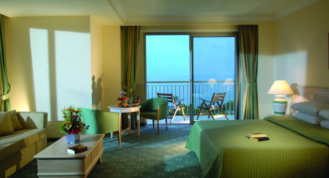 Мы с друзьями отдыхали в отели с 7 по 24 июля 2012г. Нас хорошо встретили, сразу предложили пройти покушать и позагорать, потому что до заселения оставалось пару часов! И мы сытые и довольные ждали заселения! У нас был вид на горы, море и город-это со стороны Spa-салона-, в принципе не плохо!) А наших друзей (семейную пару) заселили с видом на море! Вообщем все очень понравилось.