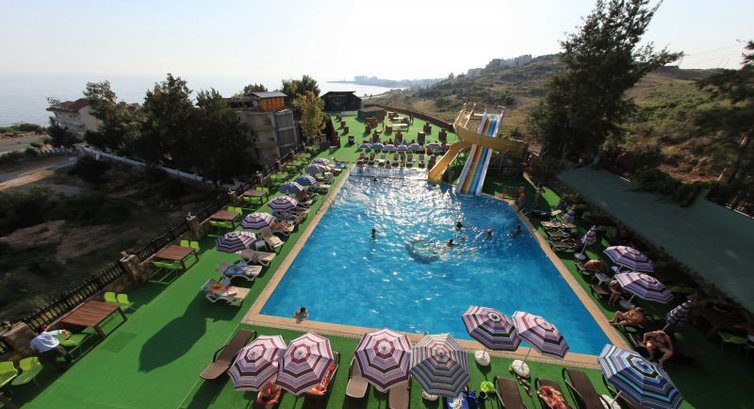 Поехал один в конце августа.За лето летал в Турцию второй раз,оба раза в Аланью. Сам отель не плохой,номера большие(учитывая,что я жил один),вот питание не всегда радовало(немного скудное).Но вот вид на пустырь с балкона не радовал.Бассейн просторный и большой,даже горки есть,правда не всегда работают. Выбор в баре скудный(для 4*),и не всегда бармен был за стойкой,иногда приходилось искать или звать кого нить,чтобы налить себе колу или спрайт.Wi-fi работает только на ресепшине и то бывало что не всегда.общее впечатление-СКУЧНО!