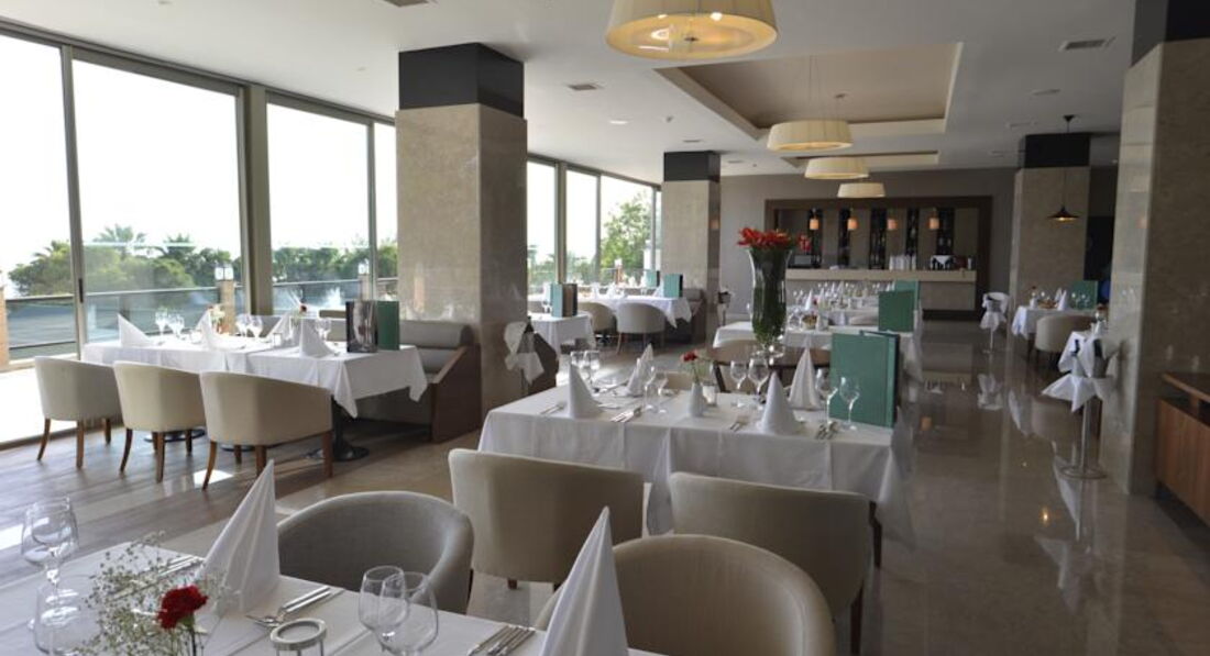 • ресторани a la carte: 5 (турецький, китайський, італійський, рибний, Steak House - за попереднім записом, за весь час проживання відвідування кожного ресторану 1 раз - безкоштовно)