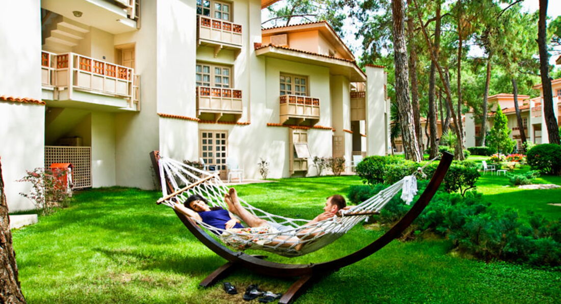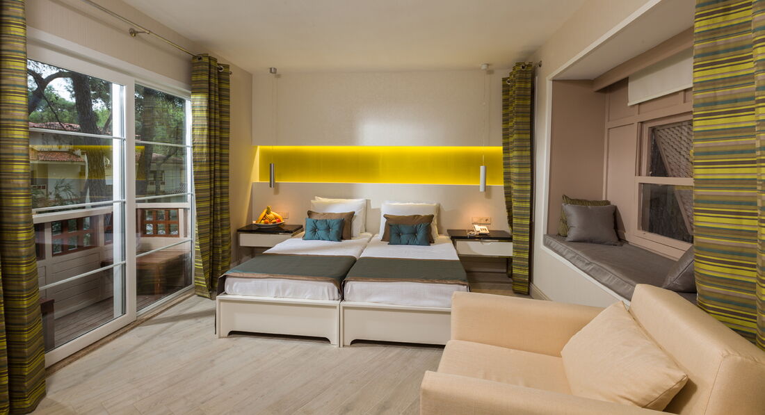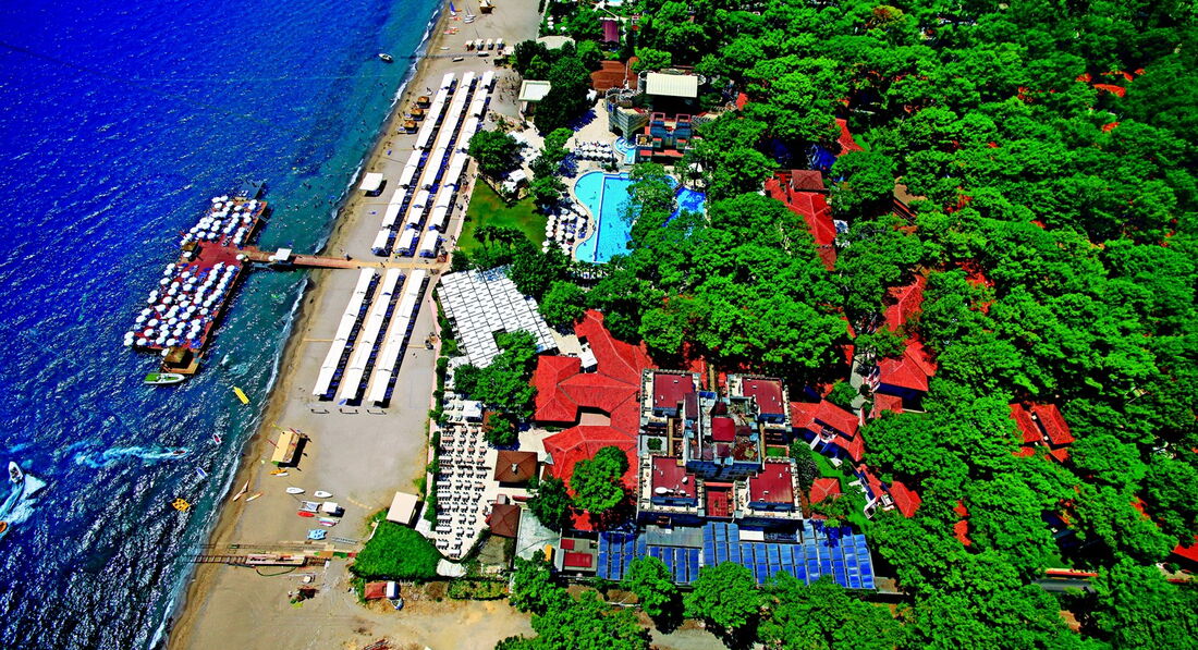 Очень достойный отель до поселка не далеко можно прогуляться территория большая вся в зелени домики стоят в сосновом лесу в 2 - 3 этажа со своим двориком нам очень понравилось.Кормили очень хорошо мы уже кушать не могли на обед ходили под конец отдыха супа покушать или салатиков .Море чистое прекрасное есть пирс для кого то это важно можно на пирсе лежать и от туда в море спускаться минуя песок на берегу.Аннимация шикарная каждый день новая.Пенные вечеринки танцоры сальсы начинают свои танцы еще днем на пирсе и желающие могут уже там учиться танцевать.Вечером после взрослой анимации начинаются танцы под живую музыку в общем всем есть чем заняться.Всем рекомендую этот отель пишите отвечу.