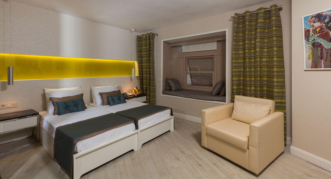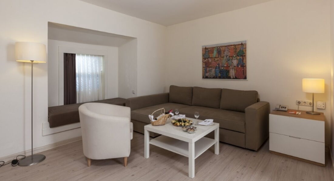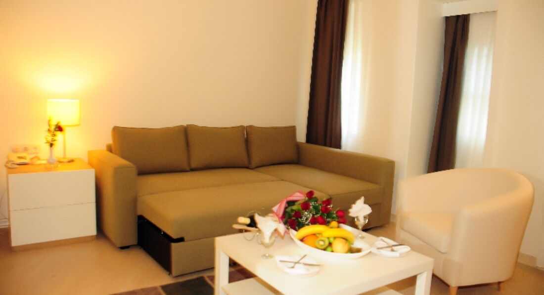 Отель находится в самом начале посёлка Гёйнюк. Время в пути на трансфере от аэропорта до отеля 40 минут.