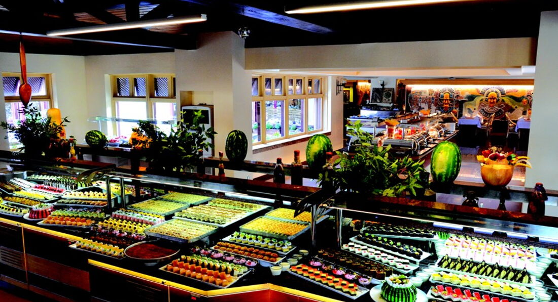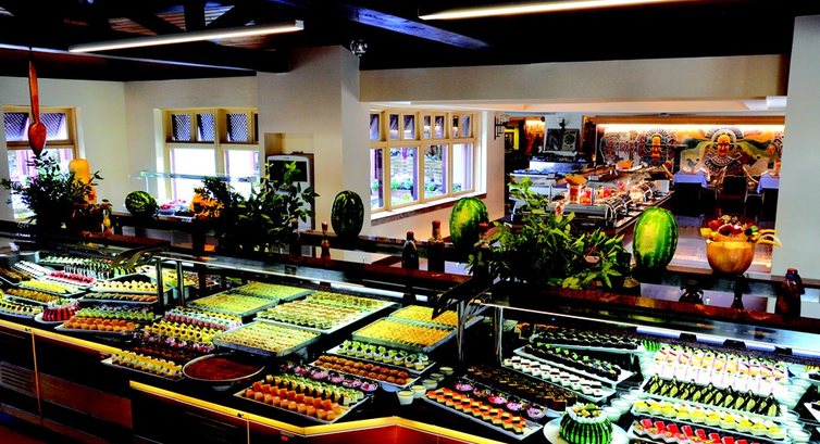 Днем еда отличная и разнообразная. На завтрак, обед и ужин ассортимент огромный. Язык говяжий потрясающий, рыбка разная, гриль меню, самостоятельно собираемые бургеры, ассорти из перцев маринованных, мяса, вообще всегда много разного (в обед и ужин). При чем, еда преследует Вас всегда: 7-10 завтрак, 10-11 поздний завтрак, с 11 начинает работать Sofa (тонкие лепешки с разными начинками, картошки, фрукты, айран, пончики – все в разное время каждый день), а с 12.30 уже обед. Отдельная зона в центре территории – Турецкое кафе, где можно попить сваренный кофе или травяной чай.