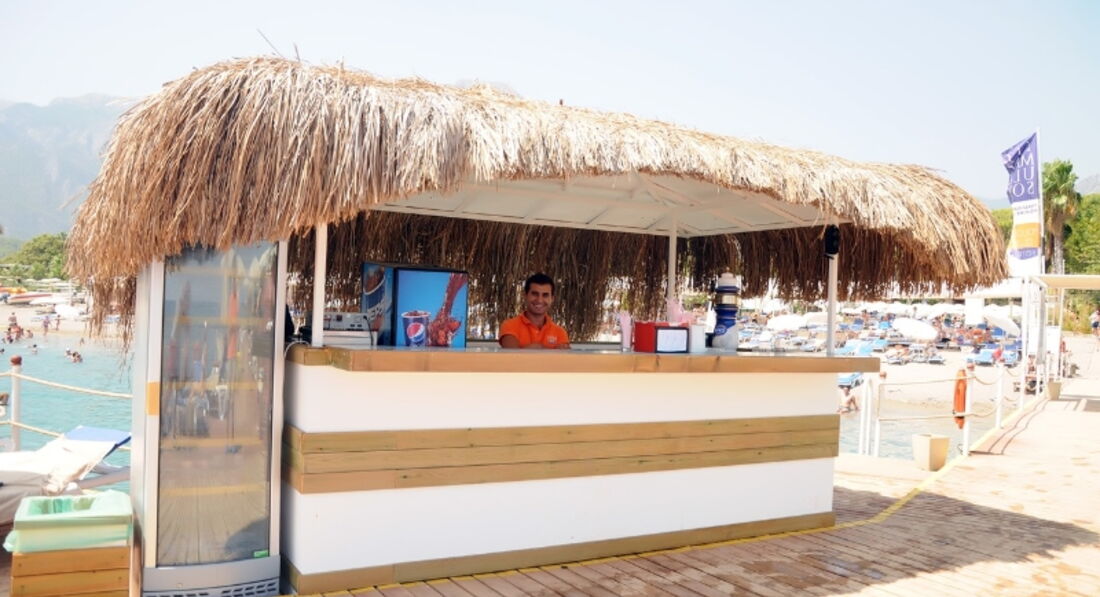 Как многие уже писали, вода в холодильниках на территории везде, айран с 11 часов в холодильнике, с 10 вроде в баре у пляжа, растворимые соки на Reception, кофе, капучино, горячий шоколад и т.д., в ресторане и на барах. Это все можно налить самостоятельно, без помощи бармена.