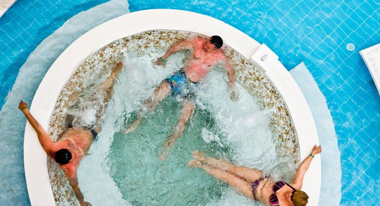В аквапарк не ходили, горки маловаты. В бассейне ребенок купался один раз. Лежаки свободные были всегда.