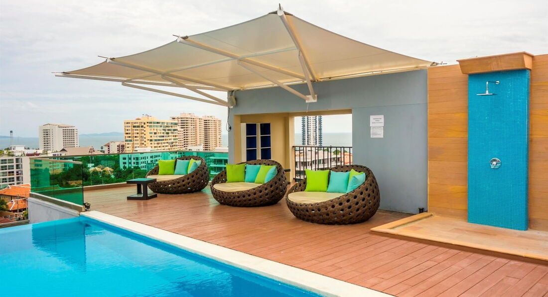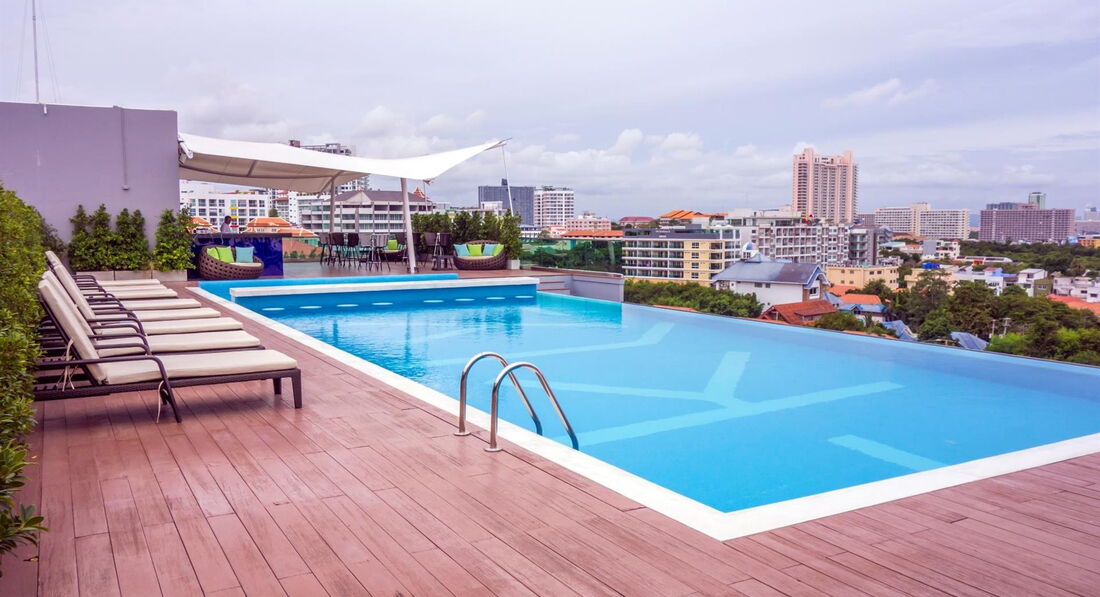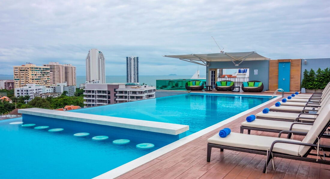 Територія та послуги: • басейн (на даху; 87 кв.м, 07:00 – 21:00) • ресторан • 2 бари • 2 ліфти • Wi-Fi у лобі (безкоштовно) • пральня • шатл-бас на Walking street (безкоштовно, 10:00-23:00) Для дітей: • басейн (25 кв.м, 07:00 – 21:00) • дитяче ліжечко • стільці в ресторані Живлення: RO, BB (сніданок – шведський стіл) Пляж: Громадський піщаний пляж. Парасольки та шезлонги – платно. Пляжних рушників немає.