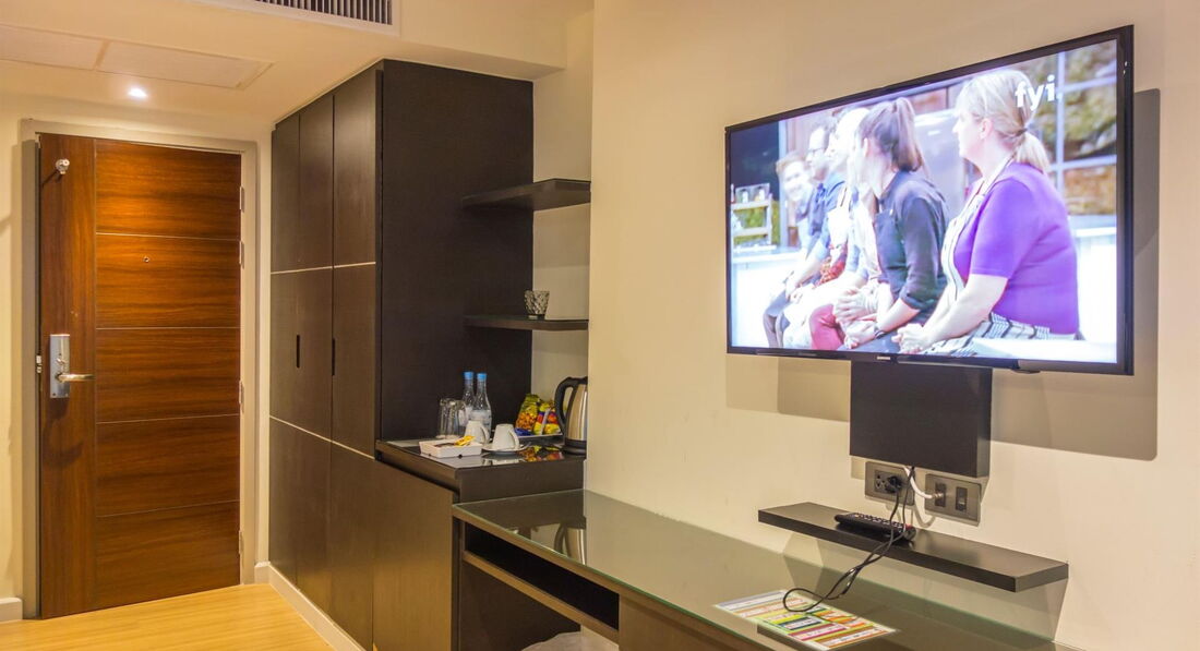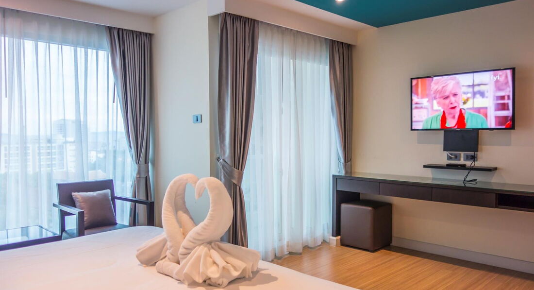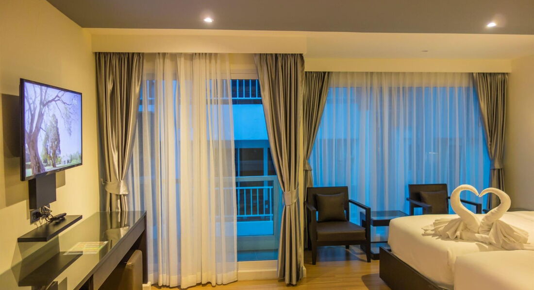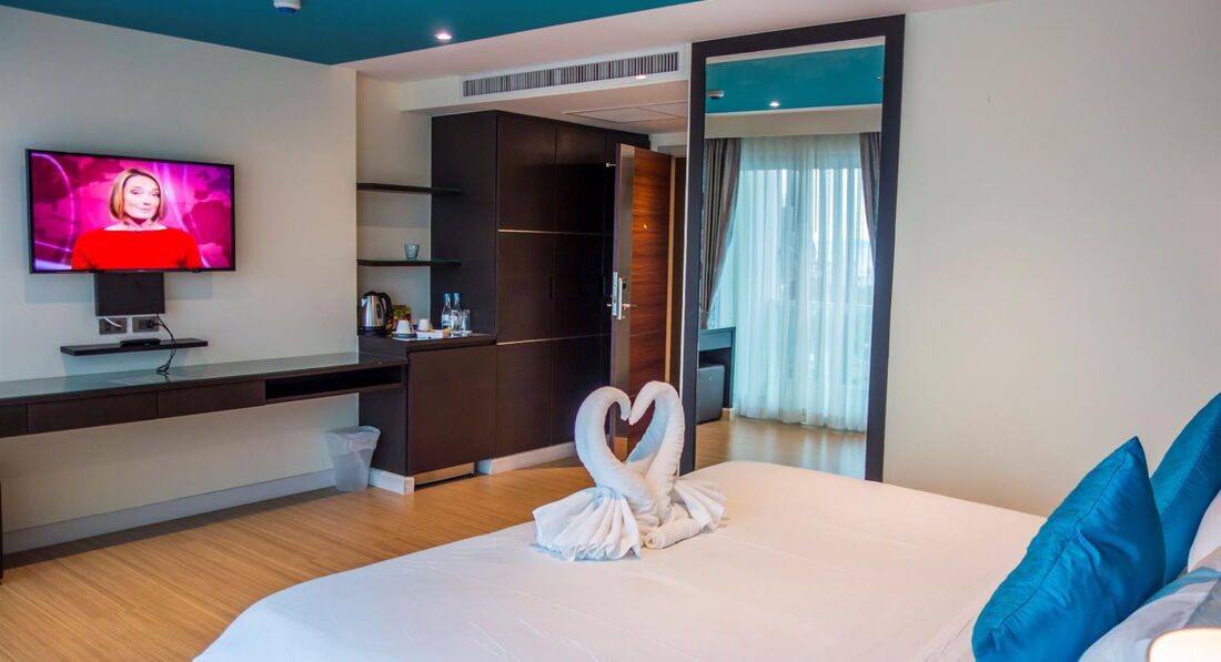Типи номерів: • 42 deluxe city view (32 кв.м, dbl/twin, макс. 2+1 чол, вид на місто) • 43 deluxe sea view (32 кв.м, dbl/twin, макс. 2+1 чол, вид на затоку Джомтьєн) • 5 premium (41 кв.м, макс. 2+1 чол, вид на затоку Джомтьєн) Є номери, що з'єднуються (1 пара deluxe city view, 2 пари deluxe sea view).У номері: • кондиціонер • ТБ (є російський канал) • Wi-Fi (безкоштовно) • сейф • стіл стілець • міні-бар • 2 пляшки води щодня, безкоштовно • душ (з туалетним приладдям) • набір для приготування чаю/кави • праска – на запит (застава) • балкон