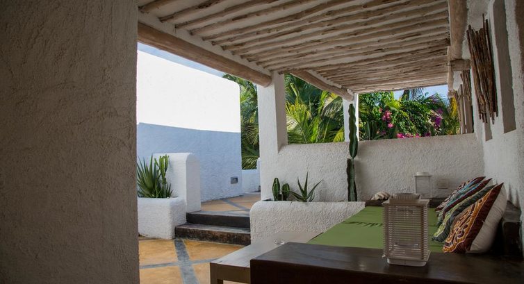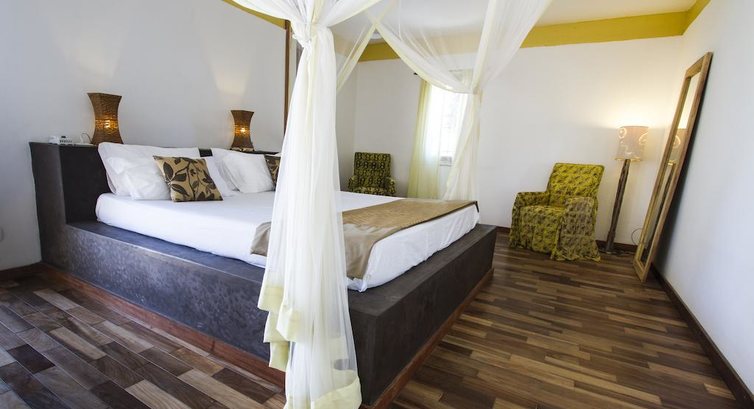 3 Junior Suite (Перший напівлюкс на першому поверсі має терасу з видом на сад і веранду з видом на океан і пляж. Другий напівлюкс розташований на другому поверсі з двома приватними терасами з видом на сад. Третій напівлюкс розташований на першому поверсі з верандою з видом на сад. сад.У номерах є диван (не у всіх), який можна перетворити на односпальне ліжко, велике двоспальне ліжко, вентилятор, ванна кімната з душем.
