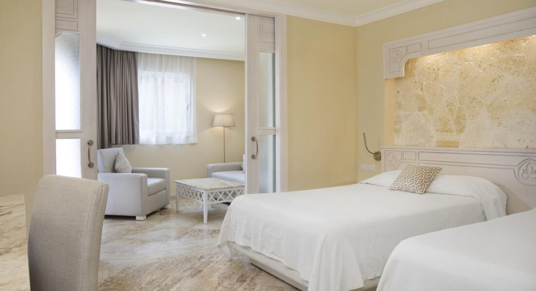 • 4 Family Suite (43 кв.м., 3 дорослих + дитина/2 дорослих + 3 дітей) - 2 спальні, 1 спальня з 1 ліжком King bed, 2 спальня з 2 ліжками Full bed, міжкімнатні двері, балкон вид на сад/море