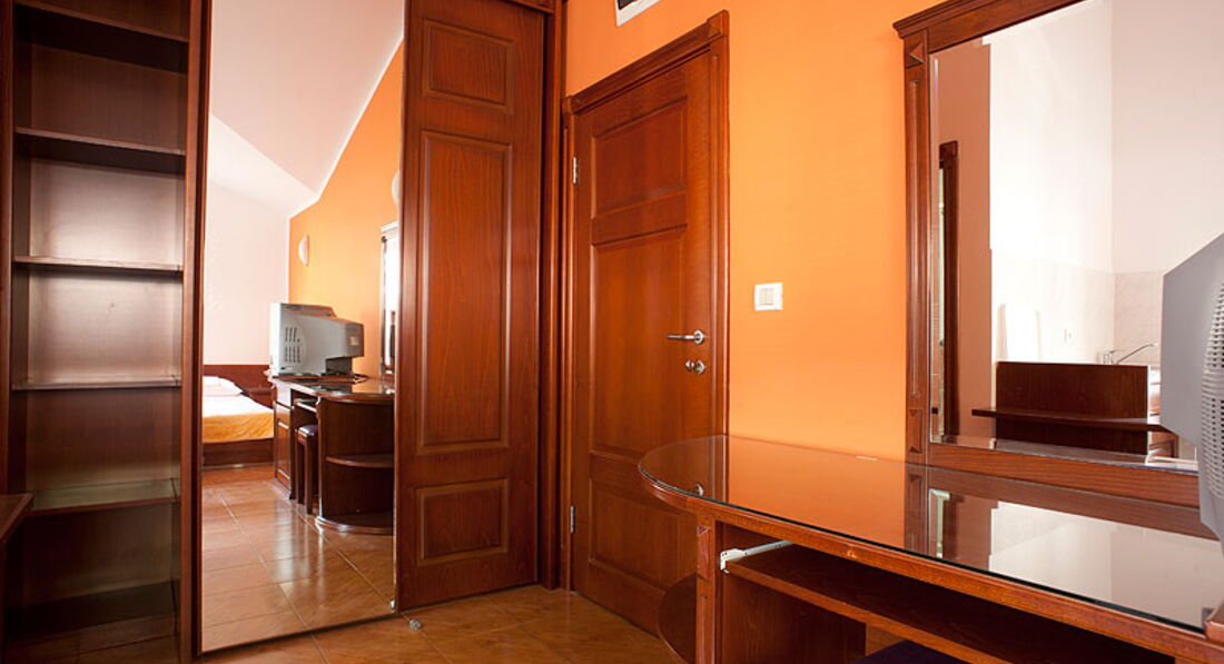 Пляж: 250м від піщано-галькового муніципального пляжу (лежак – 4 євро, парасолька – 2 євро). Водні види спорту (установка з водними лижами, катамаран) – за додаткову оплату. Через дорогу від вілли (при готелі Mediteran) знаходиться аквапарк, вартість для дорослих – 15€/день, для дітей 10€/день.