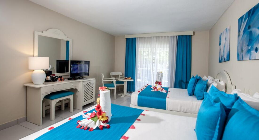 • Sea View Room (22-25 кв.м., макс. 2 дорослих + 2 дітей/3 дорослих) - 2 ліжка розміром 1,35 x 1,9 м, ванна кімната з ванною/душовою кабіною, балкон з видом на море , номери розташовані в корпусах №1, 5, 6, 7