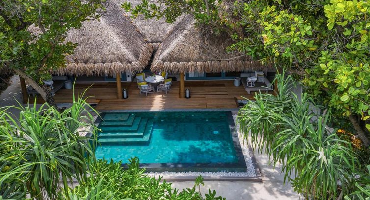 • Deluxe Beach Pool Retreat безтурботний простір наших пляжних вілл ще більше в Deluxe Beach Pool Retreat, в яких є окрема вітальня та власний басейн площею 32 м2, зі спальнею, вітальнею та ванною кімнатою, що виходять на блакитні води лагуни. Бутильована питна вода, пляжна сумка, шльопанці та килимки для йоги