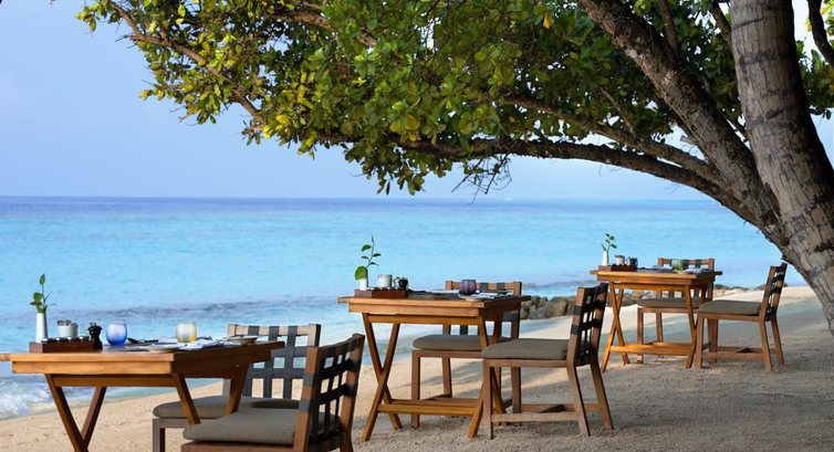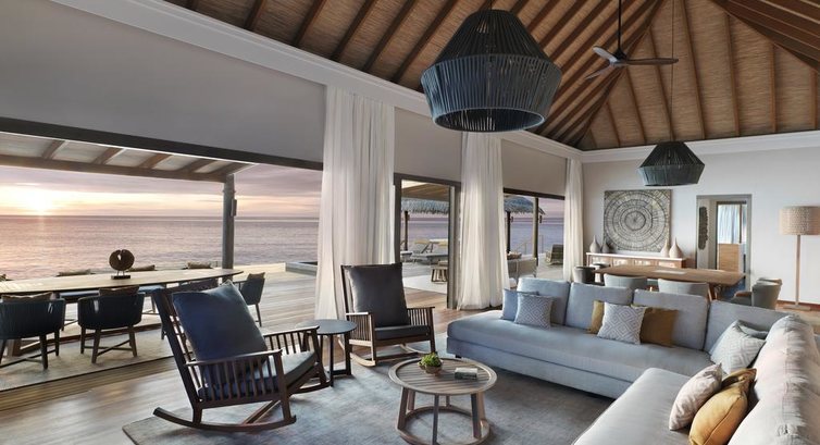 • The Residence Ця чудова двоповерхова резиденція над водою - це декадентське святилище з прямим, безперервним видом на захід сонця і розташоване в кінці вілл Over Water для забезпечення повної приватності. Розкішна дворівнева вілла складається з чотирьох спалень (дві з ліжком king-size та дві – з двома ліжками twin), вітальнею, їдальнею, буфетною, ванною кімнатою, душу на відкритому повітрі, тераси з басейном (55 м2), зонами відпочинку, обідньою зоною , зоною для спа-процедур, спуском у воду та видом на океан. Вілла розташована на палях над водою у лагуні. Бутильована питна вода, пляжна сумка, шльопанці та килимки для йоги