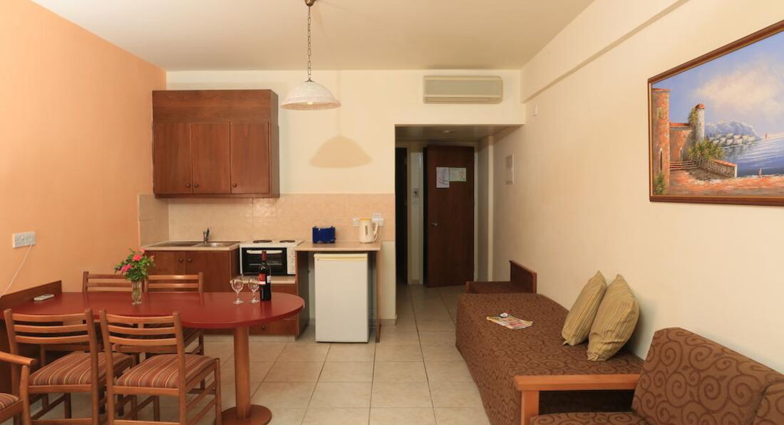 Типи номерів: One Bedroom Apartment Sea View One Bedroom Apartment Land View Studio Sea View Studio Land ViewУ номері: тераса / балкон кондиціонер Wi-Fi кухня / кухонний блок ванна/душ санвузол набір для кави та чаю TV: супутникове телефон сейф у номері холодильник