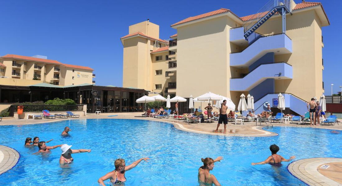 Територія та послуги: wi-fi: безкоштовно wi-fi у лобі: платно анімаційні програми оренда автомобіля лікар: платно інтернет кафе ліфт оплата за кредитними картками паркування: безкоштовно послуги з прасування одягу хімчистка зручності для гостей з обмеженими фізичними можливостями Розваги та спорт: відкритий басейн аквааеробіка більярд віндсерфінг водні види спорту водні лижі дартс настільний теніс прокат велосипедів тенісний корт ігрова кімната масаж сауна Для дітей: басейн дитяче ліжко дитячі стільці в ресторані дитяче меню няня: платно (за запитом) Живлення: ресторан бар басейну система живлення: BB Про ресторан У готелі Vangelis Hotel Apartaments є власний ресторан і бар. У ресторані Orange Grove подається сніданок «шведський стіл», а також широкий вибір страв місцевої та міжнародної кухні протягом дня. У ресторані пропонується широкий вибір місцевих вин. Сніданок: з 07:00 до 10:00. Обід: 12:30 до 14:30. Вечеря: з 19:00 до 21:00. Про бар Відкритий коктейль-бар Orchard знаходиться поруч із басейном, де подають різноманітні напої, каву, екзотичні коктейлі та улюблені класичні напої у розслаблюючій та спокійній атмосфері. Пляж: піщаний пляж довжина пляжної смуги: 2000 муніципальний пляж парасольки: платно пляжні рушники: платно шезлонги: платно піщаний пляж знаходиться за 100 м від готелю через проїжджу дорогу