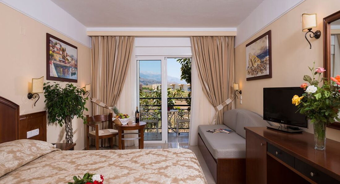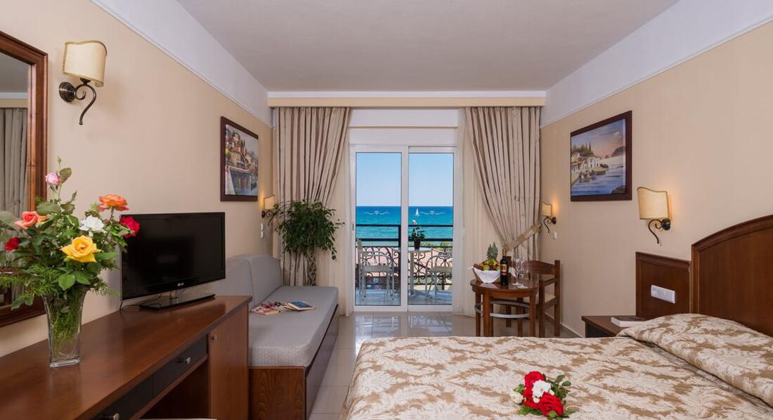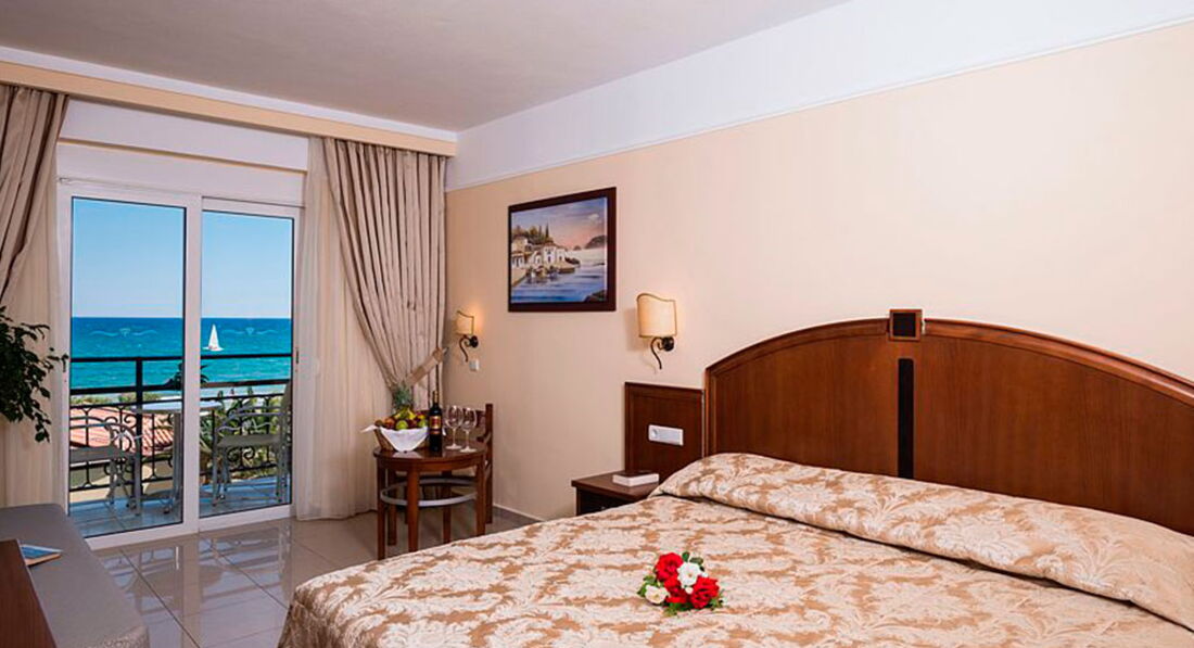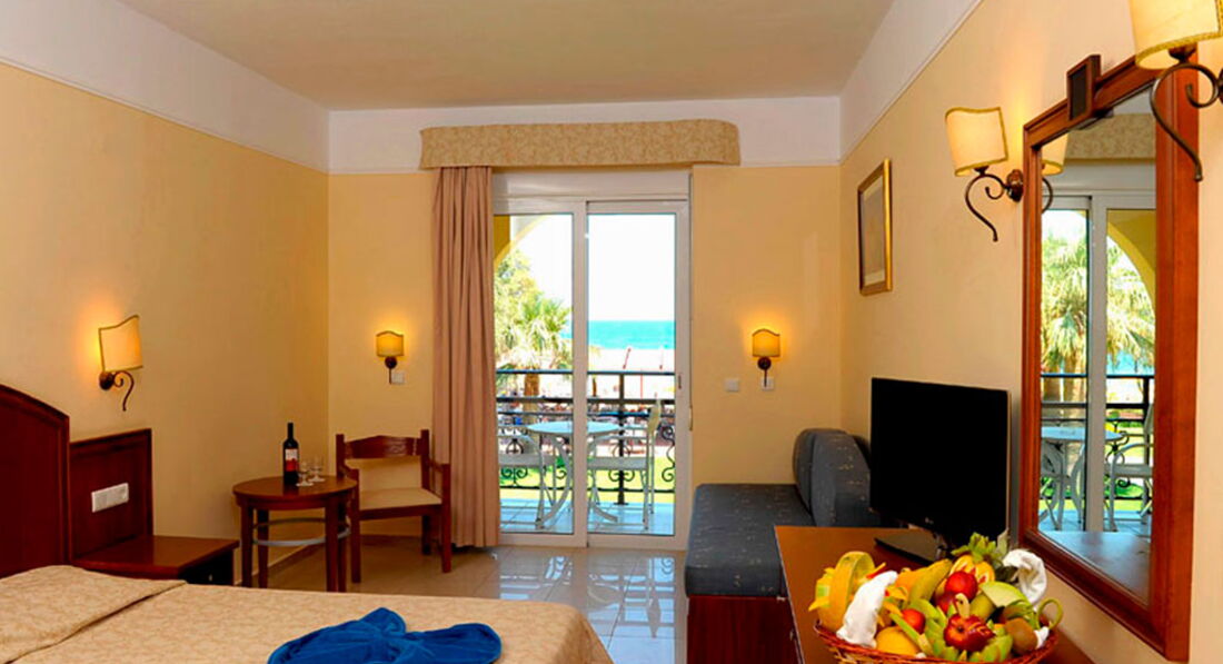 Типи номерів: Promo room only terrace (розташовані на першому поверсі, осн.ліжко -2 односпальні, макс. 2 чол., 19-25м2); Standard room LV only terrace (розташовані на першому поверсі, вид на сад, осн.ліжко -2 односпальні, дод. - Софа, макс. 3 +1 чол., 20-22м2); standard room SV/SSV/front SV (прямий або вид на море, осн. ліжко – 2 односпальні, дод. – софа, макс. 3+1 чол., 20 м2); SGL Standard room only terrace (розташовані на першому поверсі, вид на сад, осн.ліжко -2 односпальні, макс. 1 чол., 15-20м2).У номері: сейф: в номері, платно зміна білизни: 3 рази на тиждень кондиціонер: індивідуальний ванна зміна рушників: за запитом телефон підлога: керамічна плитка прибирання номера: щоденно фен: є балкон або тераса ТБ: супутникове Інтернет: Wi-Fi, платно міні холодильник телевізор: є