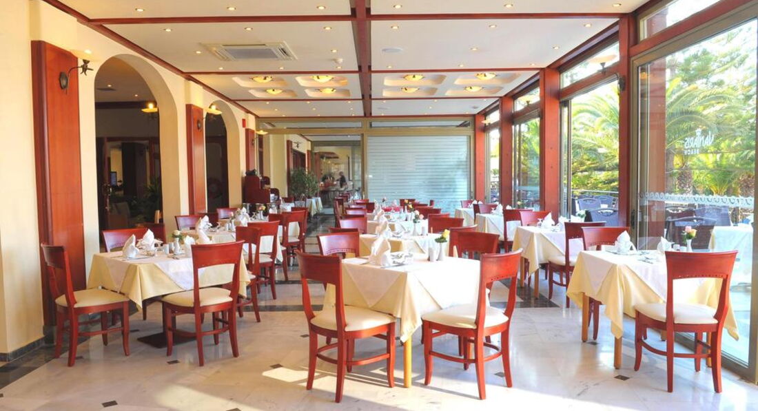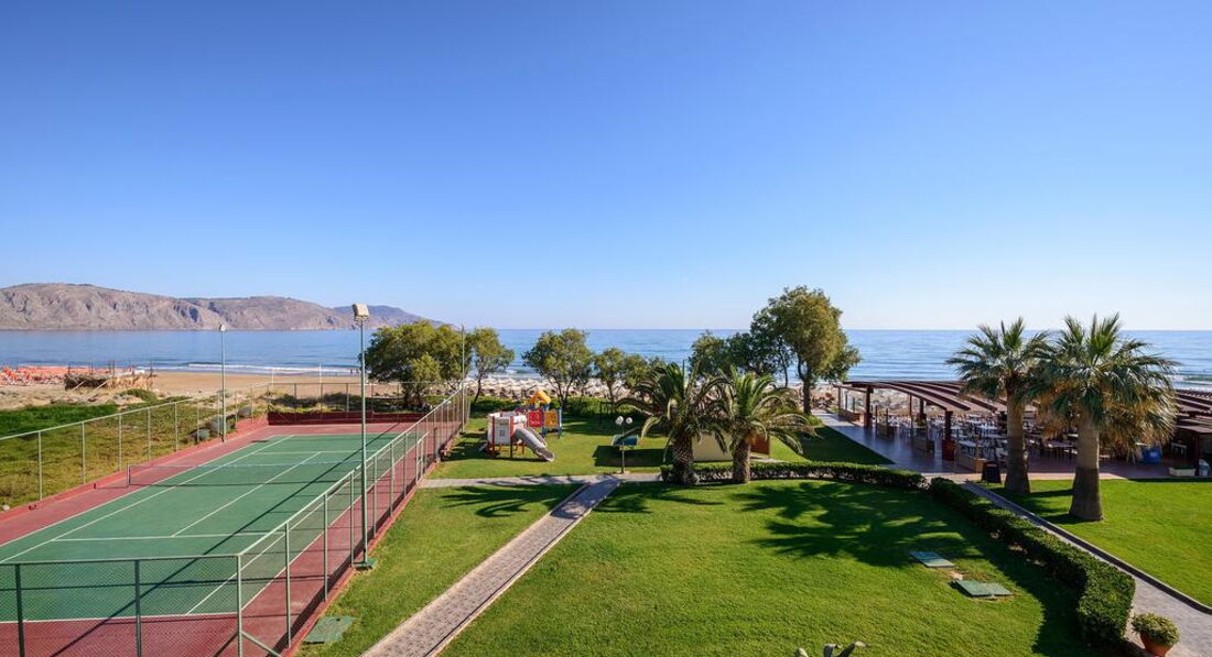 Територія та послуги: Інтернет-кафе платно бари: 2 (головний бар та бар на пляжі) ресторани: 1 пральня (за запитом, платно) лікар за викликом паркування безкоштовно басейни: 1 (22 м2) Wi-Fi у громадських місцях, безкоштовно магазини біля басейну парасольки, шезлонги: безкоштовно Розваги та спорт: масаж платно освітлення тенісного корту більярд платно водні види спорту платно тематичні вечірки безкоштовно ((грецький вечір, жива музика, пляжні вечірки) настільний теніс тенісний корт платно Для дітей: дитячі басейни: 1 дитячий майданчик (під відкритим небом без огорожі, без навісу, покриття – трава) дитячі клуби: 1 (у готелі Vantaris Palace, платно) дитяче ліжечко: за запитом, платно дитячі стільці в ресторані: є Живлення: HB AI Пляж: піщано-гальковий (Широкий) вхід у море: піщаний на пляжі парасольки, шезлонги: платно бар на пляжі: є на пляжі рушники: безкоштовно (з готелю) До оплати приймаються кредитні картки: American Express, Visa, MasterCard.