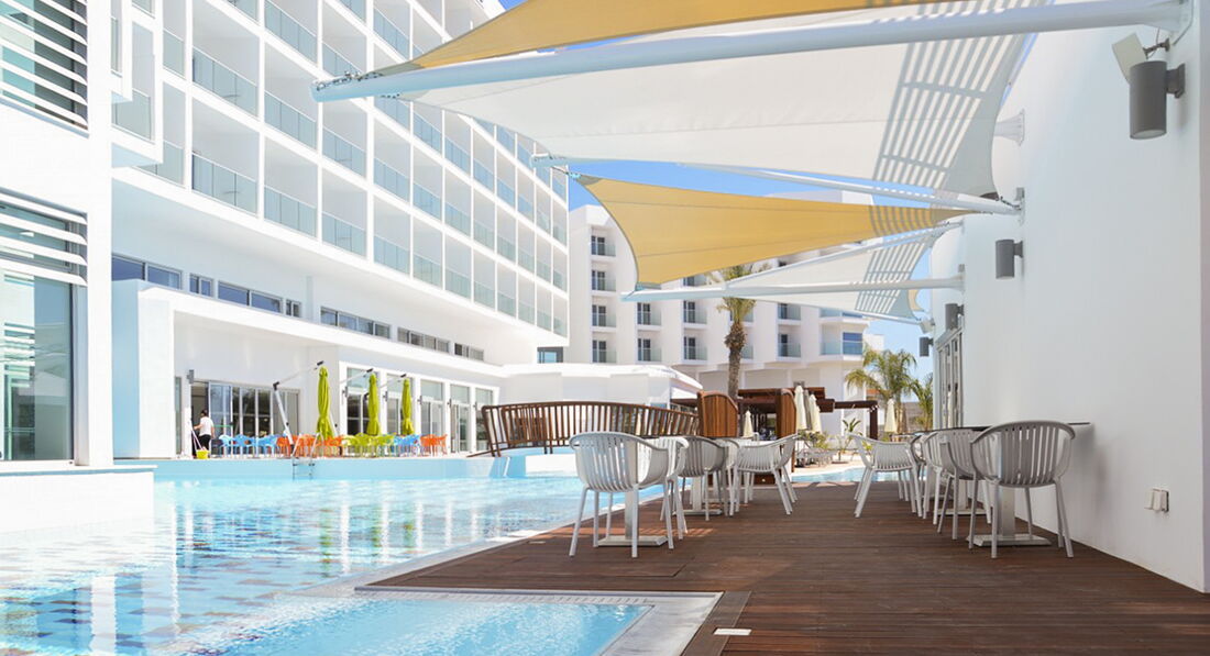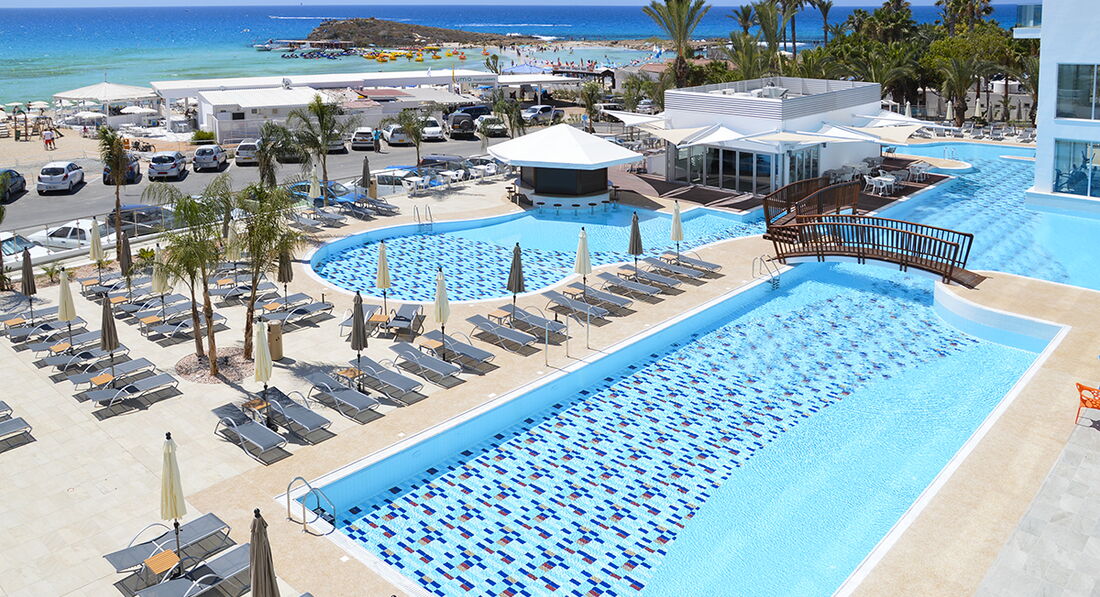 Новий, сучасний готель з чудовим місцем розташування. Розташований на першій береговій лінії, до моря 20 м, у самому центрі знаменитого пляжу Ніссі, який є одним із найкращих пляжів Європи. До центру Айя-Напи 3 км, до аеропорту Ларнакі 50 км. Невелика, але зручна територія, привітний персонал, затишні номери. Поряд з готелем розташована зона барів і кафе, у диско-барі Nissi Bay завжди грає танцювальна музика та проводяться пінні вечірки. Також близько до готелю розташовані пункти прокату автомобілів і квадроциклів, продуктовий і сувенірний магазин. Рекомендуємо для чудового молодіжного та активного відпочинку.