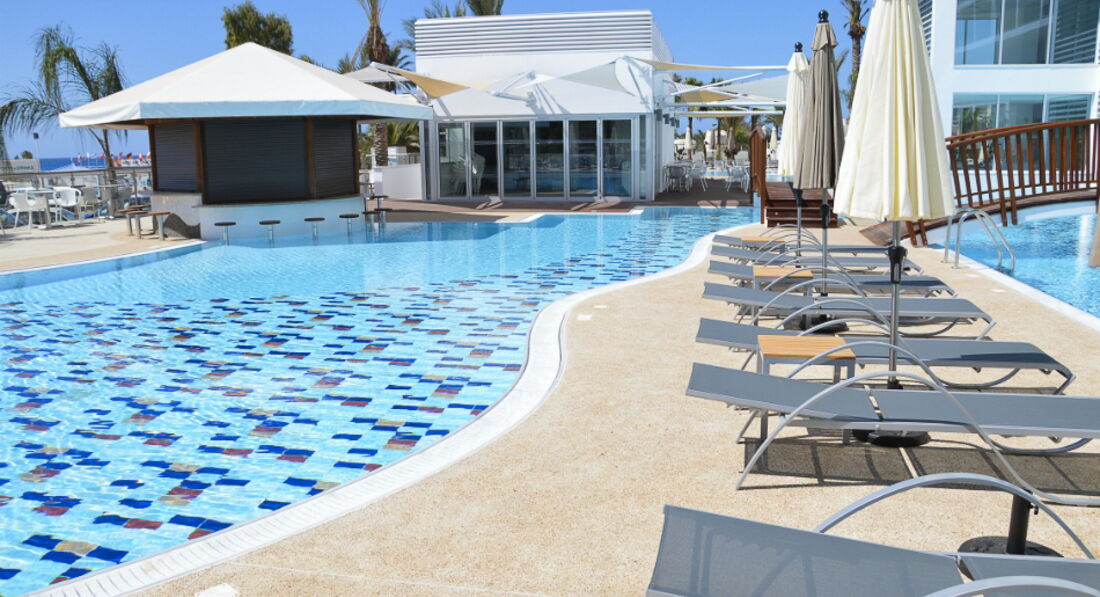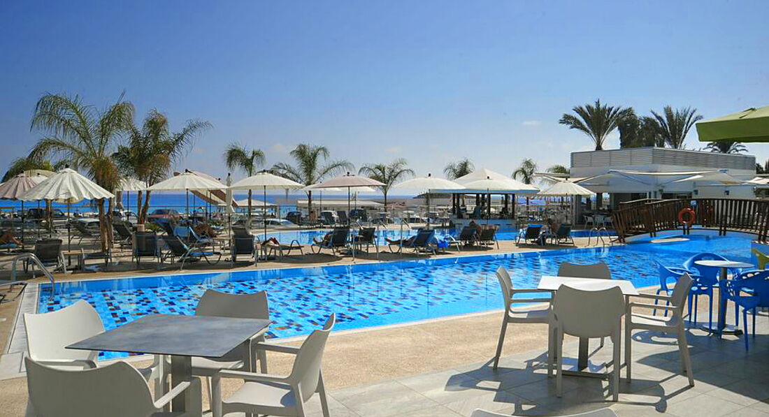 Ездили в конце июня,погода была ну просто жарище!с утра всегда ходили на пляж два лежака и зонт обходился в 7,5 евро, пляж конечно грязноват,но терпимо...его стараются прибирать.К обеду на пляже очень многолюдно,но нас это никак не смущало,играет музыка,много детей.Не привело в восторг тот факт,что мы попали в сезон размножения водорослей....их ну просто куча,старались по утрам чистить,но толку как нам показалось не много от этого.Очень хороший вид с балкона прямо на пляж с лазурной водичкой это не могло не радовать глаз!Приехали в отель мы к 17.00 разместили сразу же (видимо по тому что заселение у них в 14.00) В другие дни видели туристов прибивших с утра,они с утомлённым взглядом дожидались заселения.На ресепшене им объясняли ситуацию тем что отель полностью забит и даже с маленькими детьми не могут никак заселить раньше.Питание у нас было завтрак + ужин, кормят не плохо,голодными не уходили.Завтраки однообразны,по сравнению с ужином,но в целом всё хорошо.На ужин напитки платны,цены вполне адекватны (по меркам Кипра). Очень вежливый персонал,всегда улыбаются и готовы помочь,понимают русский кто то частично,а кто то и вовсе хорошо.Территория не большая,есть бассейн,напрягало то что люди с утра занимали лежаки у бассейна а сами до вечера так и не появлялись возле него,так сказать "ни себе и не людям". Уборка номера каждый день,полотенца меняли,пол подтирали,мы и этому рады, если искать минусы,то они всегда найдутся.В номере есть мини-бар охлаждает так себе, за 20 евро на ресепшене нам предложили понизить температуру его охлаждения , но предупредили что бы не ожидали прям "вау", поэтому брать не стали,интернет 5 евро в сутки работал нормально.Кондиционер спасал,работал хорошо,освежал нам в такую жару.