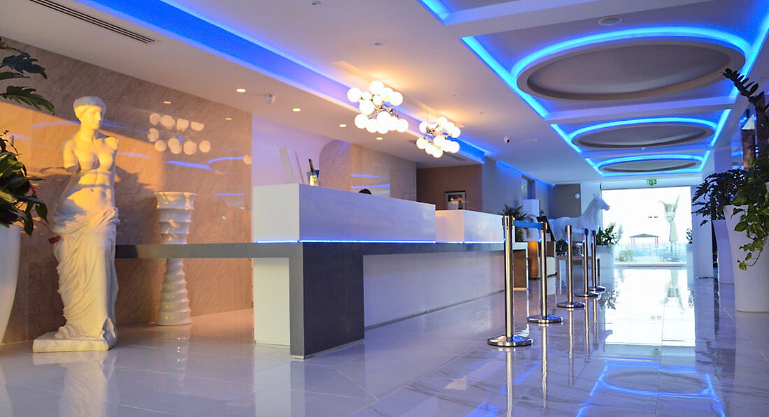 Отдыхали в начале июля 2016 года. В целом отель оставил положительные эмоции! Приехали в отель сразу 40 человек - порадовало что волокиты с заселением не было - сотрудники отеля были подготовлены к встрече , расселили в течение 15 мин! Номера светлые, чистые , стеклянные балконы с видом на море _ это прекрасно! Расположение отеля хорошее _ до море 5 мин , магазины рядом есть, до центра автобус через дорогу. Территория отеля небольшая , но это сказывается только на нехватке лежаков у бассейна. Если хочешь отдыхать возле отеля , а не на пляже ( где стоимость услуг за лежак и зонт по 2,5 евро каждый) то прийдется вставать часиков в 7 утра что бы были свободные места. Питание нам лично понравилось , достаточный выбор блюд как мясных так и фруктов , сладостей! В ресторане все довольно культурно и спокойно! Без толкучки ! Есть небольшие минусы в уборке номера ( не протиралась пыль со столов, постель заменили только через 6 дней , и то после требования убрать номер, наконец-то были вымыты полы, а на на балконе так грязь и осталась (можно было бы хотя бы подмести!) Это конечно нам не испортило отдых , но соответствовать заявленной четверке отель должен. А то евростандарт больше заметен в платных услугах ( сейф в номере за доп. плату 2,5 евро в сутки, интернет платный на всей территории отеля , холодильник в номере чуть морозит, если хотите больше_ платно, весы взвесить чемодан и то евро заплати. При выезде из отеля ночью не был предоставлен ланч-бокс. А ведь завтрак нами оплачен (12 евро с человека!) Не знаю вина здесь отеля или Пегаса. Сотрудники отеля говорят Пегас такую услугу не заказывает, а Пегас говорит отель не предоставляет! А крайние все равно мы - туристы! Бывали во многих странах_ нигде такой проблемы не возникало !