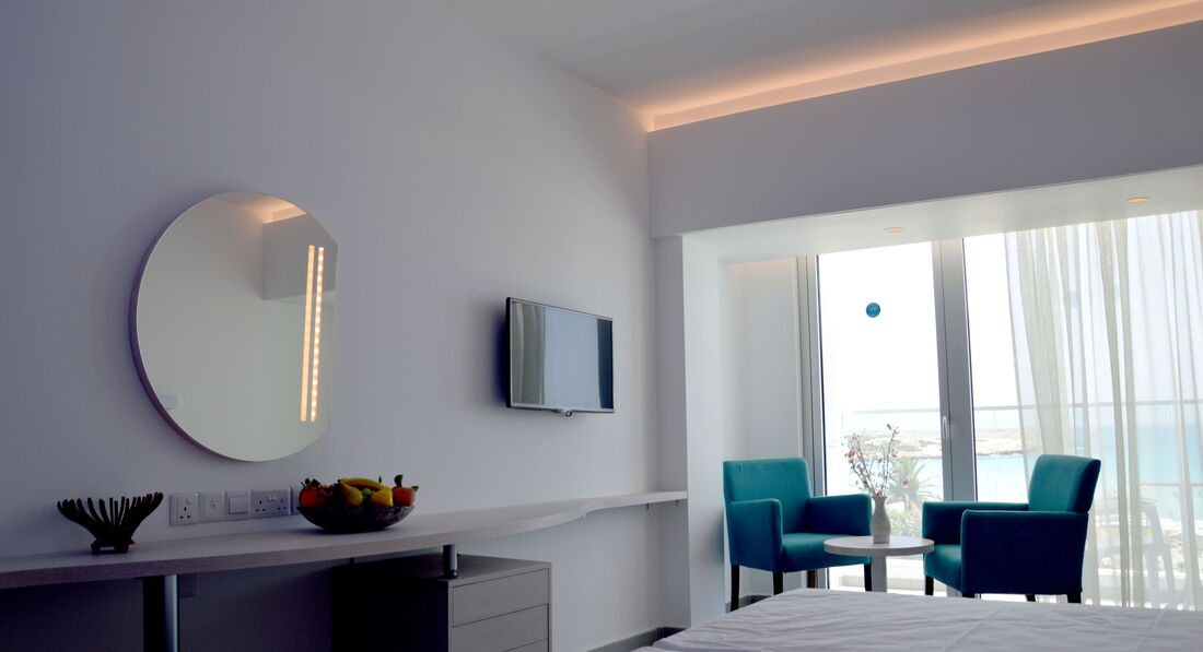 Отдыхали в начале августа этого года. Это был лучший отдых за последнее время. Что ж еще можно сказать, если это лучший отель Айя-Напы:) Отел стоит на берегу лучшего пляжа, для детей просто рай. Мелко, чисто, вода теплая, а какой вид на эту красоту почти из всех номеров отеля!На территории самого отеля имеется достаточно большой бассейн, к сожалению, только, закрывающийся в 6 часов вечера,что немного огорчило. Но, наверное, это единственный минус, выбивающийся из всего того многообразия плюсов данного отеля. Отель небольшой, но очень уютный и современный, ресторан красивый, еда вкусная. Возможно, да, блюд не так много, как мы привыкли видеть в Турции, но всегда можно выбрать что-то по своему вкусу, да и достаточно того, что вся еда действительно вкусная! Номера просторные, уютные, современные, красивые. Единственное, кровати не двуспальные, а односпальные, стоящие рядом, поэтому они часто разъезжались, а учитывая, что слышимость для этого достаточно хорошая, то всегда было слышно, как соседи сверху двигают все время эти кровати:) Но это мелочь) Как и говорила, вид из номера потрясающий, по вечерам тихо,а днем видно всю тусовку города) В номере платный сейф, но мы не заморачивались, так как персонал очень добрый и вежливый, особенно те, кого мы видели с улыбками каждый день на reseption :) им отельное спасибо) всегда помогут, подскажут и расскажут) В общем говорить можно долго, надо поехать самим, увидеть и прочувствовать на себе кайф от проведенного в этом отеле отдыха:)