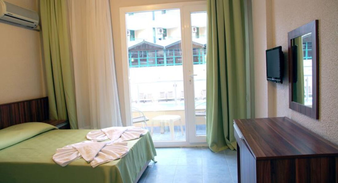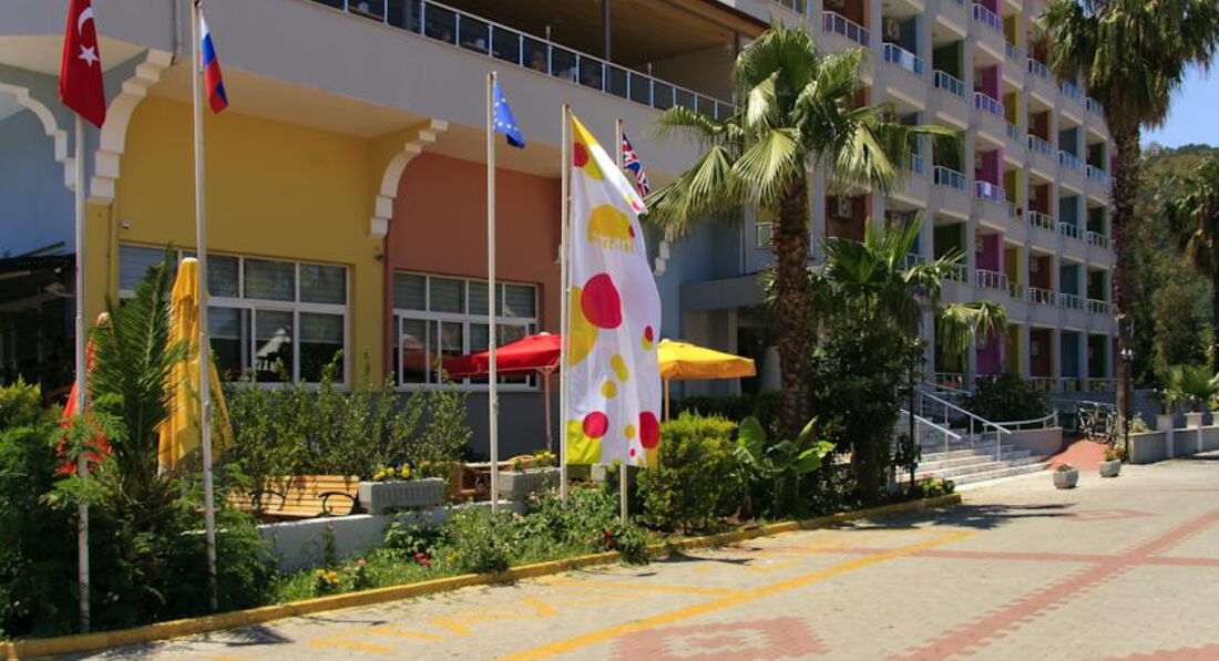 Отдыхали в этом отеле с 21 по 30 июля. Выбирали исходя иэ отзывов. Вот пишу свой, может кому нибудь пригодится. Итак, перелет с авиакомпанией Колавиа. Начитались негатива про данного перевозчика, однако у нас никаких проблем не возникло, и туда и обратно перелет без задержек, асе четко. В отель доставили около 10 утра, нас сразу отправили на завтрак, после чего в течении 15 минут получили номера. Один был готов сразу, второй просили подождать часок, там шла уборка. Пока мы разбирали сумки в уже полученном номере, нам сказали, что и второй тоже готов. В начале о номерах и приборке в них. Комнаты неплохие, все необходимое есть, холодильник, телевизор, душ, сейф платный. Уборка проводилась ежедневно, но больше формально, ни шампуня ни мыла с момента заезда не добавлялось. Уборщица, милая женщина, постоянно улыбалась, и также постоянно забывала что нибудь. К примеру часто почему то забирала два полотенца, а ложила одно, приходилось ее искать по этажу. Причем оставление чаевых не влияет на процесс уборки, пишу об этом ни как о претензии, а просто констатирую факт. Гид у нас был Дмитрий, отличный парень, жути не нагонял, путевки не впаривал, поговорили минут 20, посмеялись и больше мы его не встречали. Кстати об экскурсиях, мы брали в уличном агенстве у Гоши. Хороший, доброжелательный мужчина, что обещал, все выполнил. У него же меняли и доллары, всегда на две-три лиры давал больше, чем в любом обменнике Ичмелера. Дальше о питании. Кормили отлично. Особенно обед и ужин. Большой выбор горячих блюд. Арбузы и дыни были всегда, пару раз яблоки, сливы и виноград. Вообще мое мнение, что отелю пора еще звездочку добавить. До пляжа минут 5-7 ходу, прямо от отеля. Лежаки брали от отеля Аква, цена 5 лир на весь день, душ, туалет имеется. При желаннии можно загорать бесплатно на песке, как говорится дело вкуса. Море прекрасное, чище чем в Мармарисе, утром прохладное, освежающее. Ичмелер это райский уголок. Смело могу рекомендовать и данный отель и сам Ичмелер. Всем хорошего отдыха.