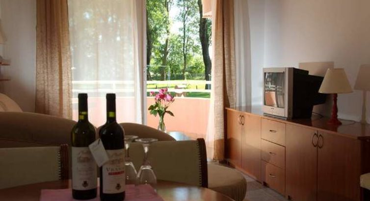 APP: двокімнатні номери знаходяться в головному корпусі, спальня з французькою та вітальня з диваном та кухнею, холодильник, обідній стіл, кондиціонер, кабельне телебачення, балкон, душ. Максимальне розміщення – 4 особи.