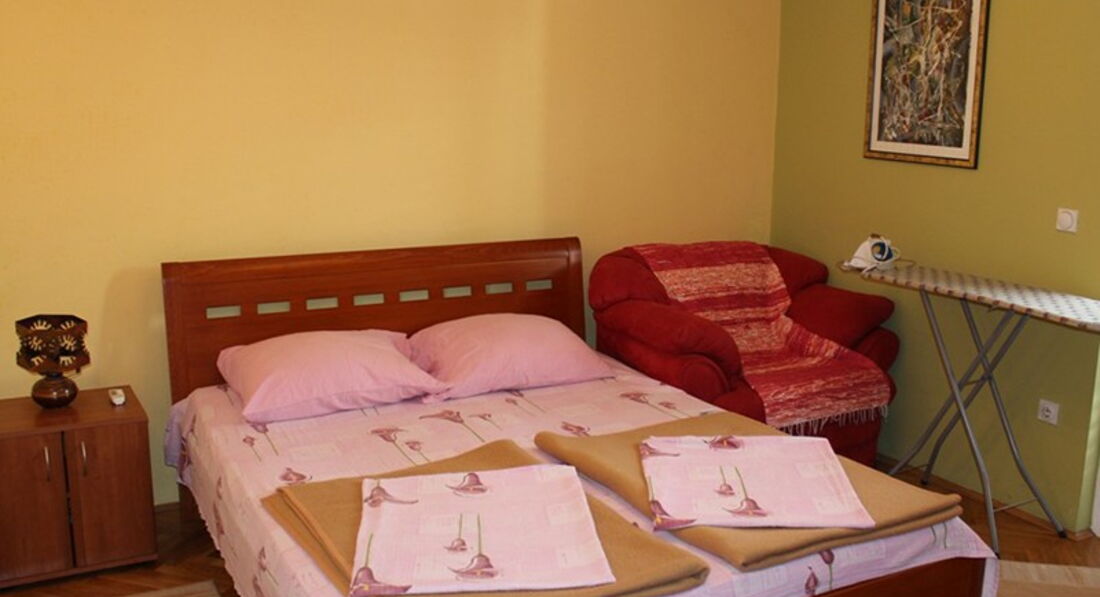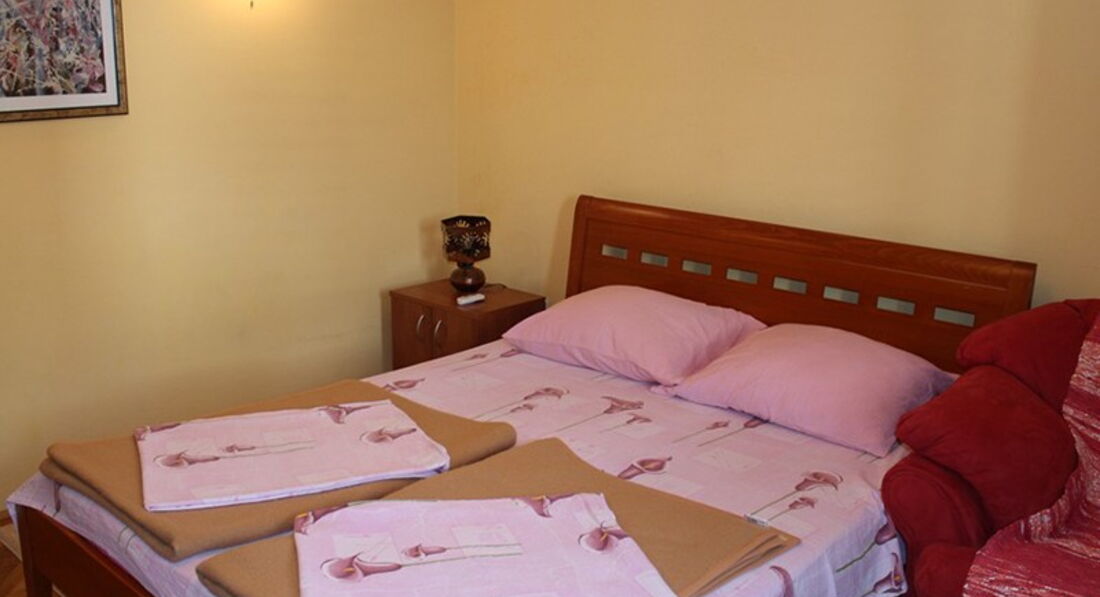 Тhree-room: дві окремі спальні (в одній-два роздільні ліжка, в другій — французьке та односпальне ліжко), у вітальні диван, обідній стіл.