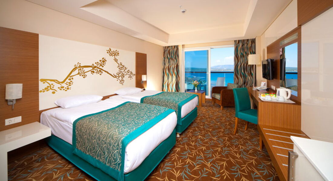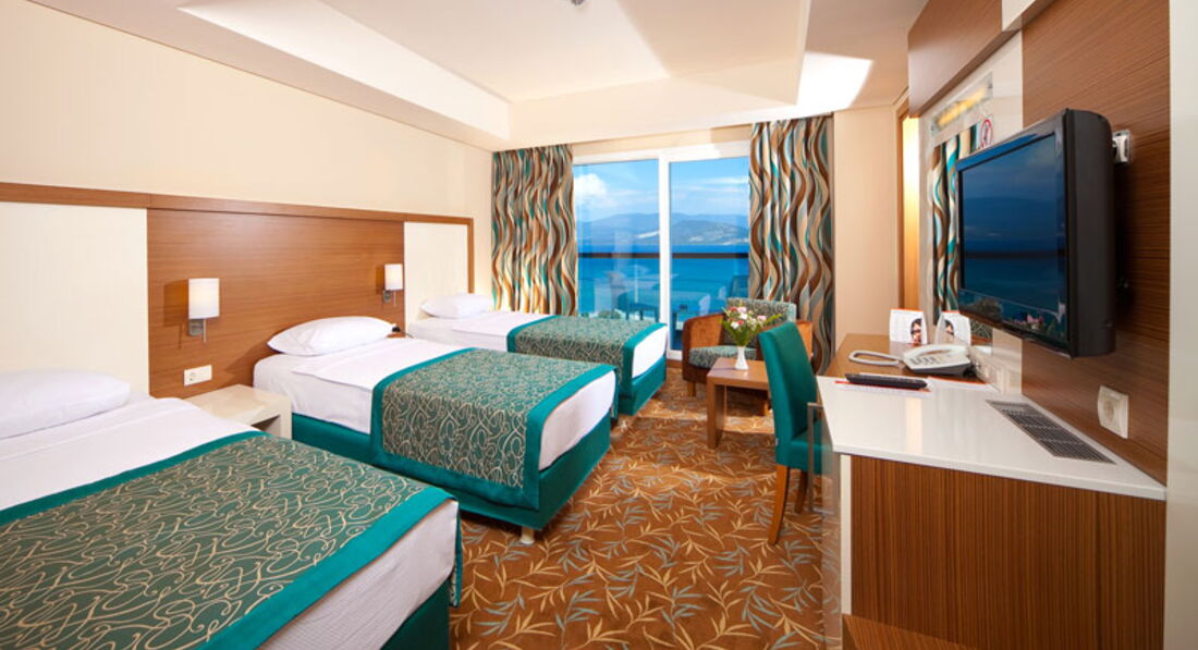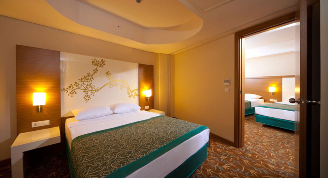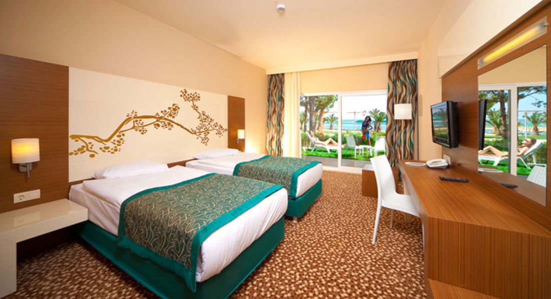 При вселении нам повезло сразу. Был заказан family room на 4 кровати. Таких при вселении небыло и нам дали family room на 5 кроватей. В последствии это очень пригодилось. Младшая дочка от обилия воды почти каждую ночь писалась. Поэтому засыпала на одной кровати а по утру перекладывалась на другую - сухую. За два дня до отъезда вообще слома кровать (прыгала на ней). С опписанным бельем даже не заморачивались, а вот с поломанной кроваьбю немного попереживали. Гид от Teztur'a посоветовала сделать вид что ничего не произошло (собрать кровать как будто она целая и не дышать на нее) но у нас так не полчилось (дочка сильно прыгала) и через день пришла баба, явно не горничная, осмотрела кровать и вызвала по рации двух мужичков. Кровать забрали, на мой вопрос - у кого возникли проблемы- успокоила. Не у нас!!! Белье меняли каждый день.