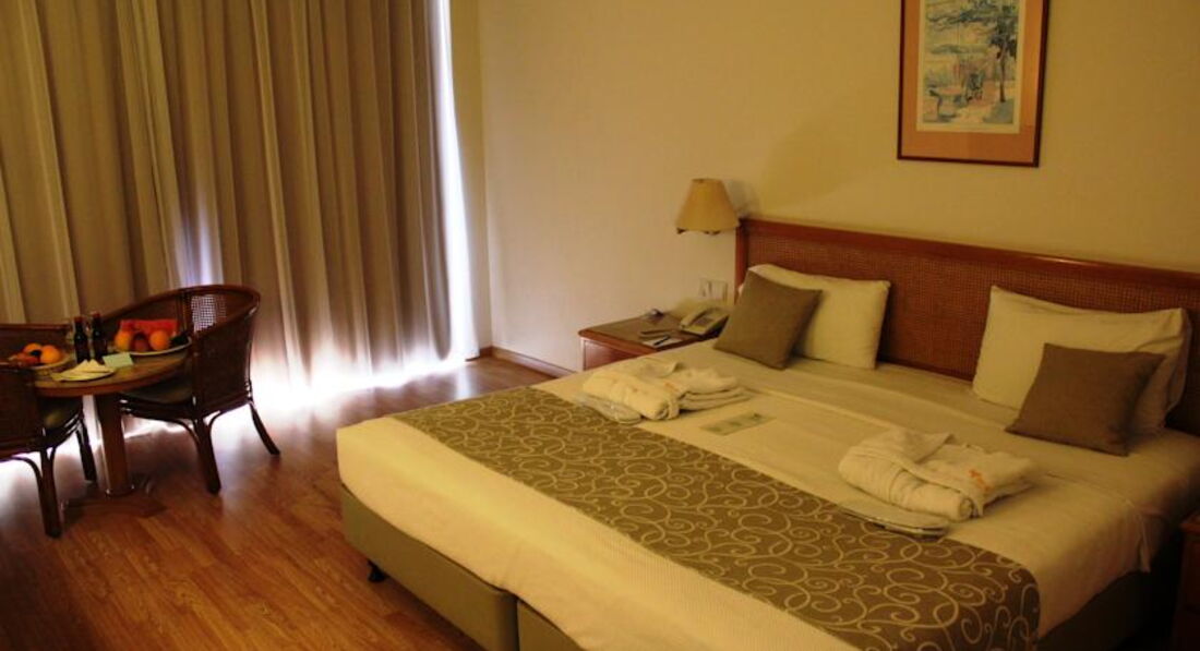 Мы прибыли ближе к вечеру, поэтому разместили нас сразу, предложив номер с видом на.... дорогу. Пытались поменять, но отговорка одна - свободных мест нет. Хотя потом нас это не особо напрягало. Номер хороший, просторный, убирались каждый день. В отношении номеров претензий нет никаких.